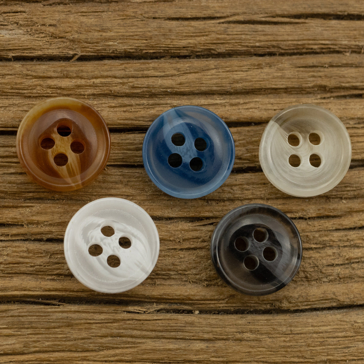 Podignite izgled svojih košulja ovim zadivljujućim sjajnim prozirnim gumbima od smole u plavoj, bež i boji kave.