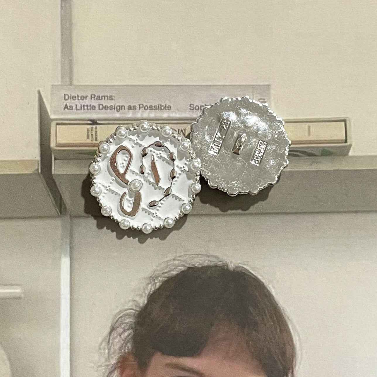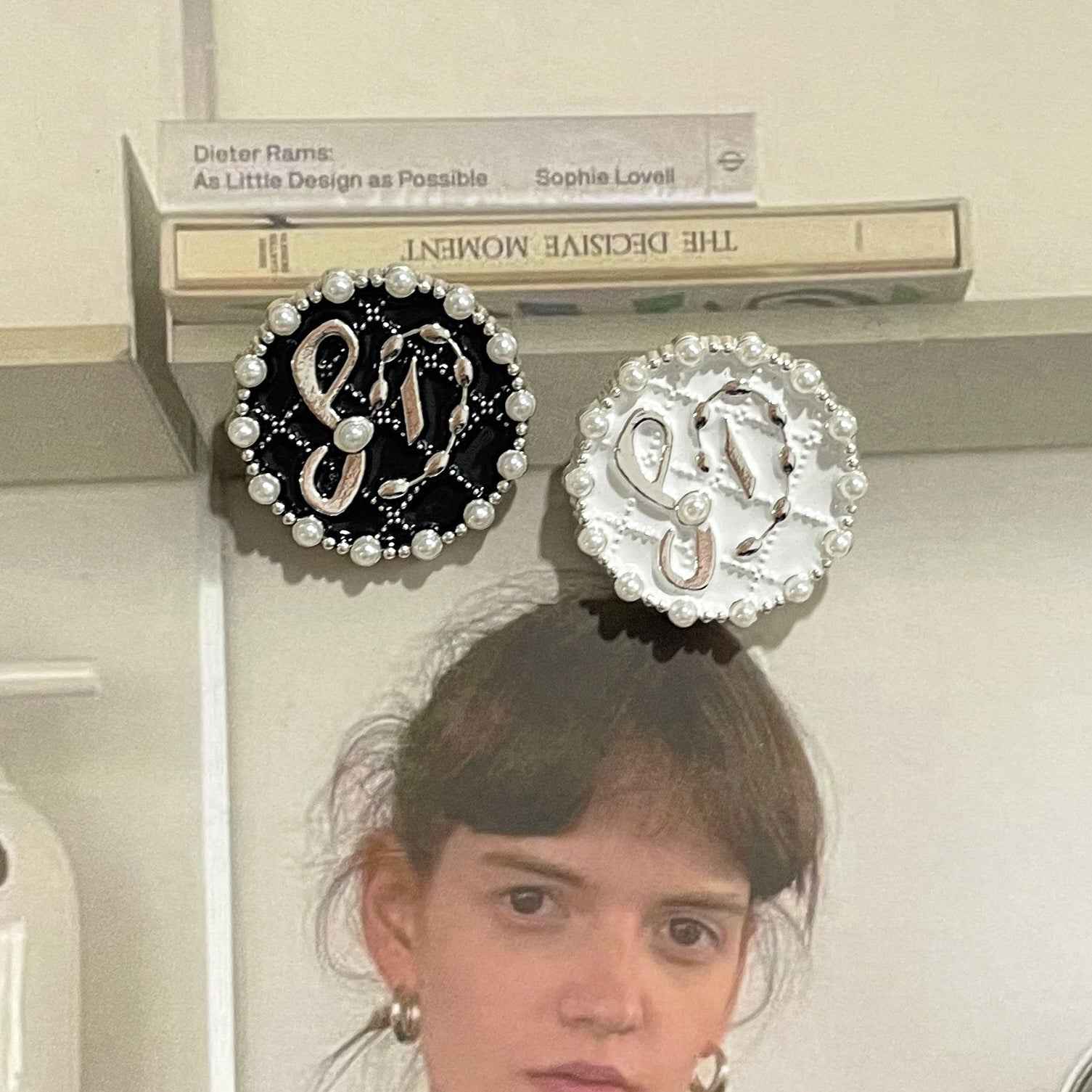 • Design: Silver base with white/black pearl diamond-check patterns - each button features unique contrast
