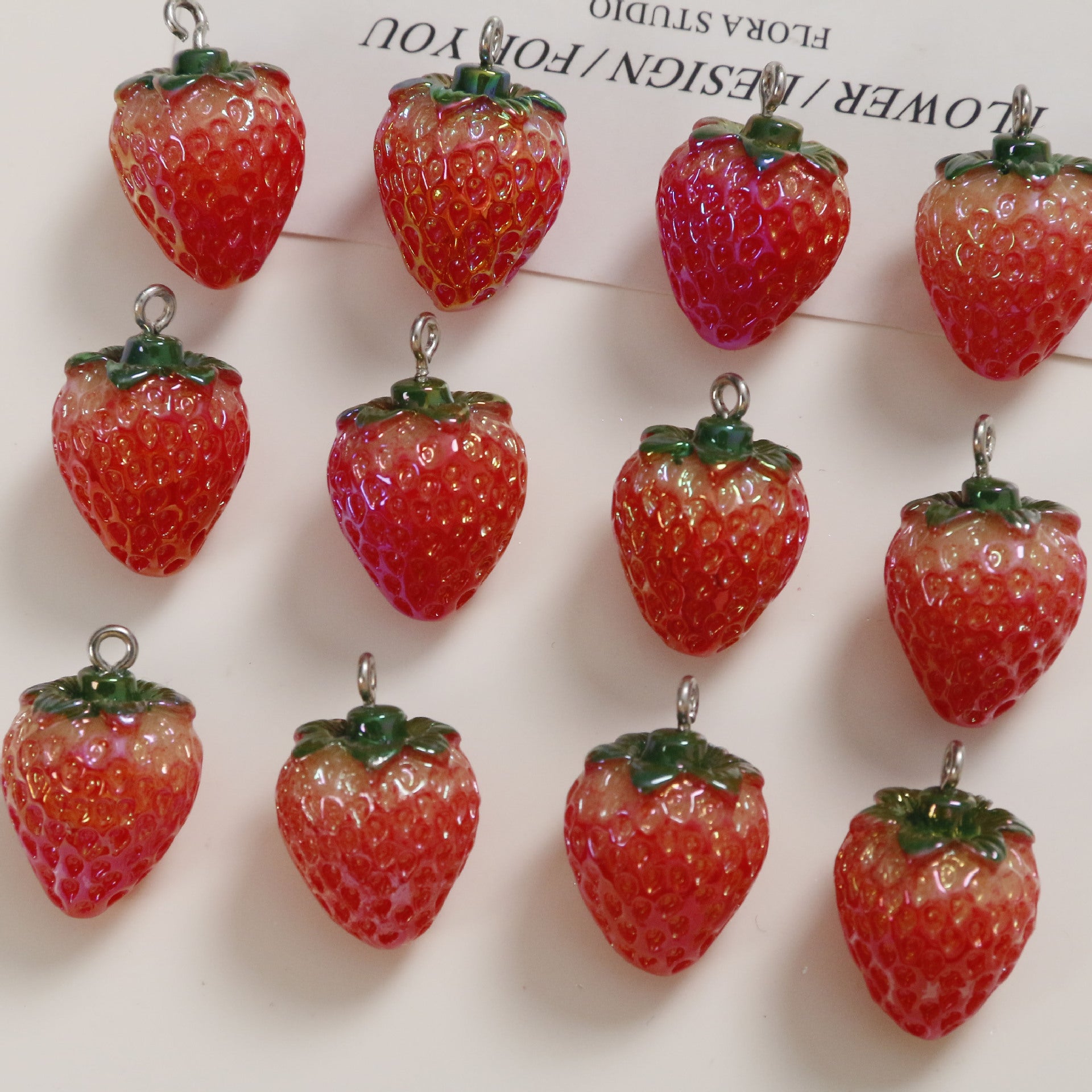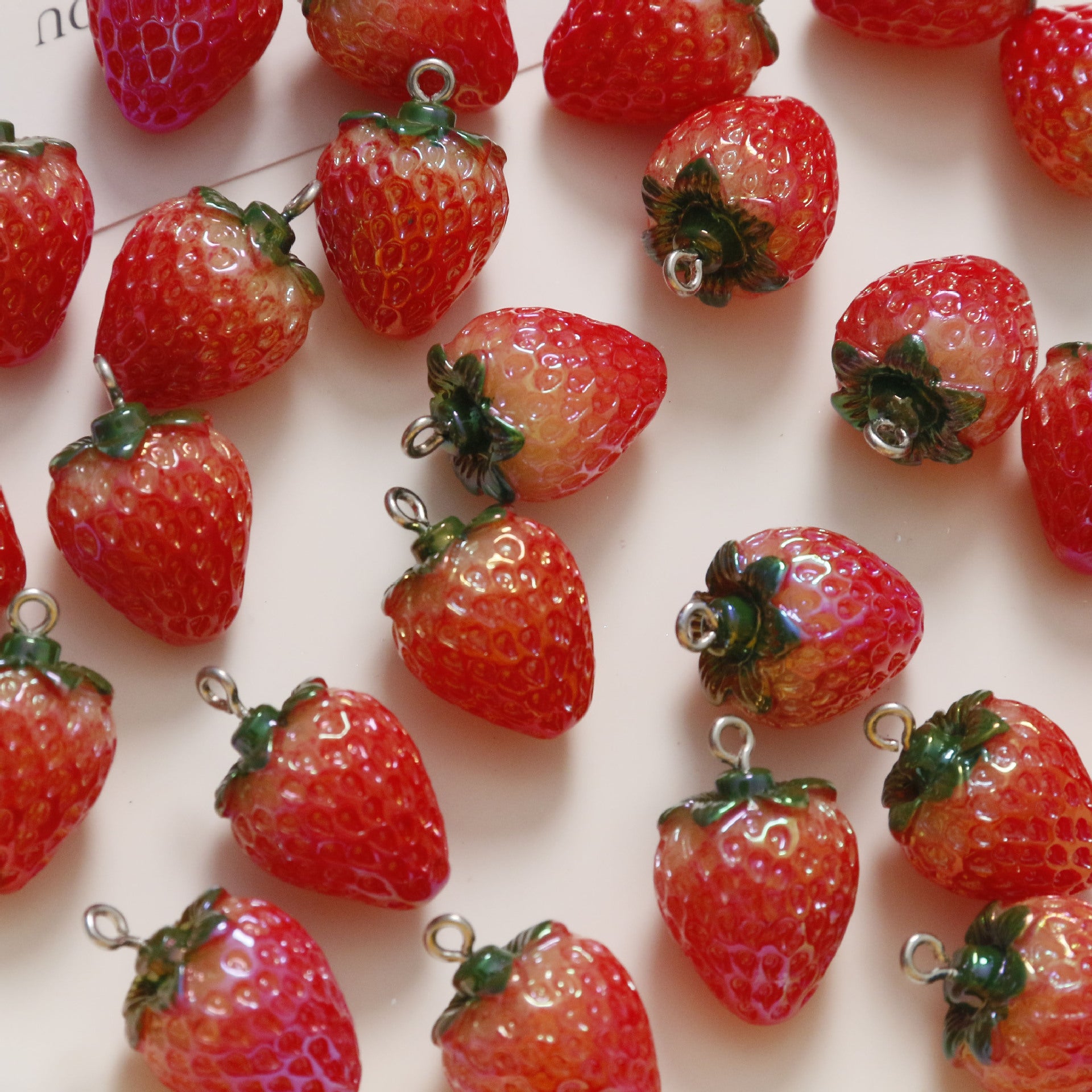 Slatki crveni smolasti privjesak jagoda iz serije umjetnog voća 6 komada