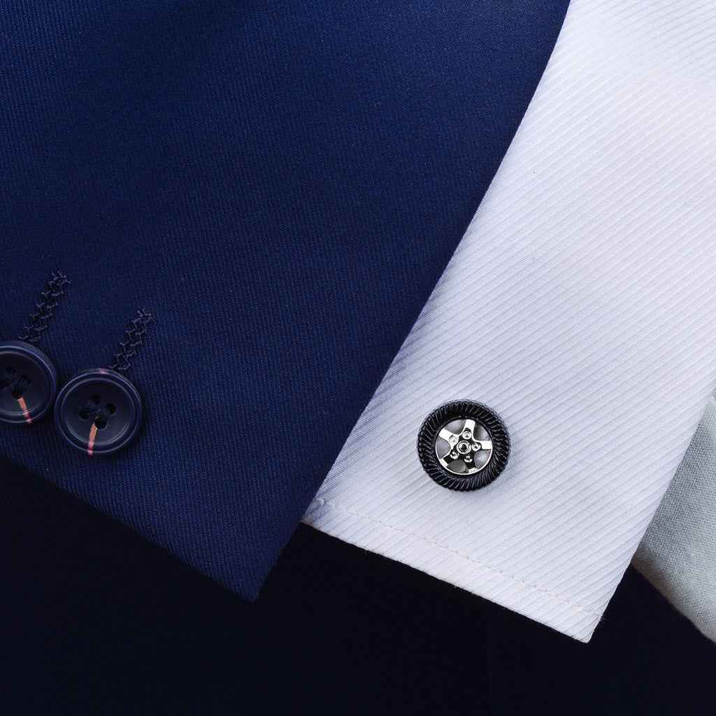 Manžetni gumbi u obliku gume s crnim emajlom – jedinstveni modni dodaci za košulje inspirirani automobilizmom