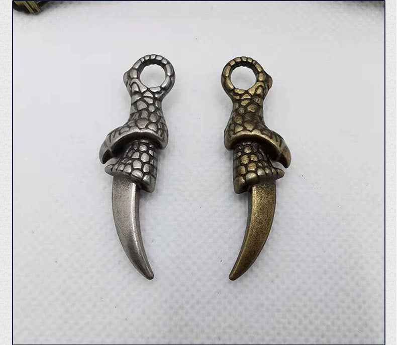 Oslobodite svoju tamnu estetiku s ovim vintage privjeskom za ključeve u obliku kandže! Izrađen od izdržljive legure cinka s antiknim srebrnim/brončanim završecima, ovaj oštri dodatak sadrži: