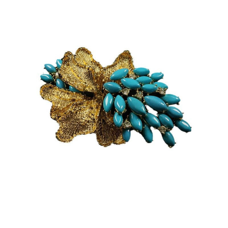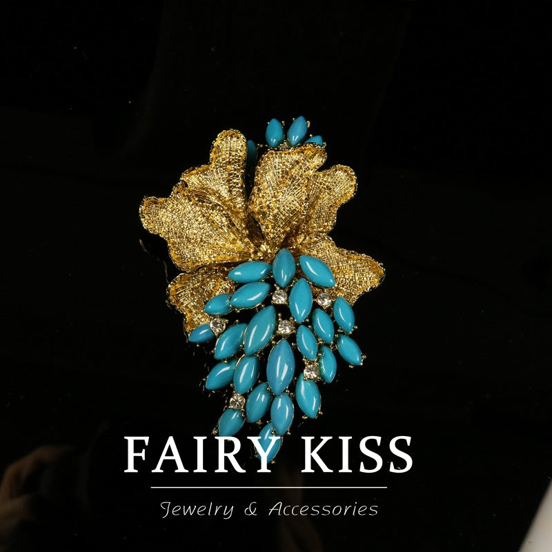 Izrađena od visokokvalitetnog legiranog materijala, ova broška prikazuje složene detalje i čvrstu konstrukciju, osiguravajući da ostane dragocjeni komad u vašoj kolekciji godinama. Motiv grožđa, inspiriran kraljevskim estetikama, jedinstven je i elegantan, što ga čini svestranim modnim dodatkom za kapute, blejzere, šalove ili torbe. Bilo da se odijevate za formalni događaj ili dodajete dašak glamura svakodnevnom izgledu, ova broška sigurno će privući poglede.