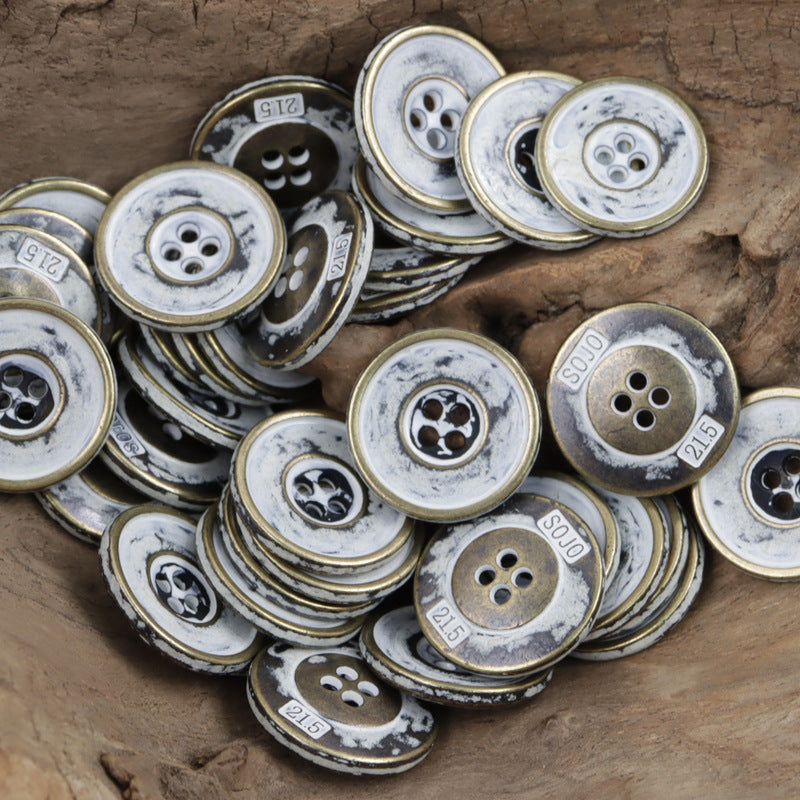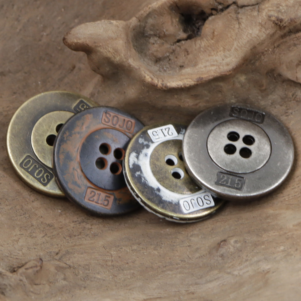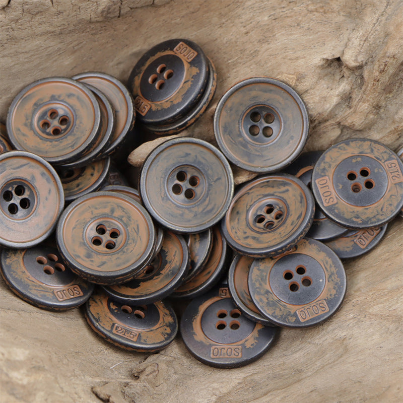Izrađeni od metala, ovi gumbi su izdržljivi i dugotrajni. Zarđali finiš dodaje istrošen izgled koji nadopunjuje robusnost traper tkanine.