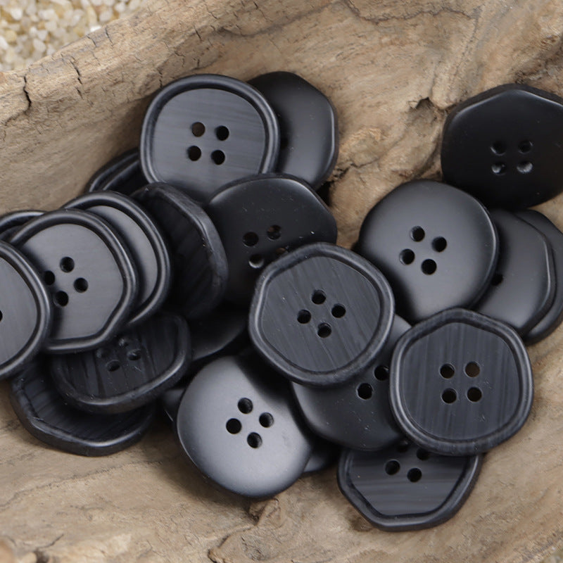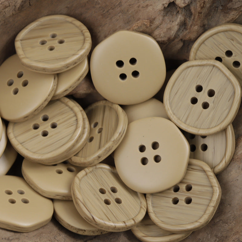 Ovi bijeli, crni i kaki poligonalni gumbi od smole s uzorkom drveta i četiri rupe jedinstven su i stilski dodatak bilo kojem odjevnom predmetu ili projektu izrade. Tekstura drveta daje ovim gumbima prirodan i rustikalni izgled, dok poligonalni oblik dodaje moderan štih.