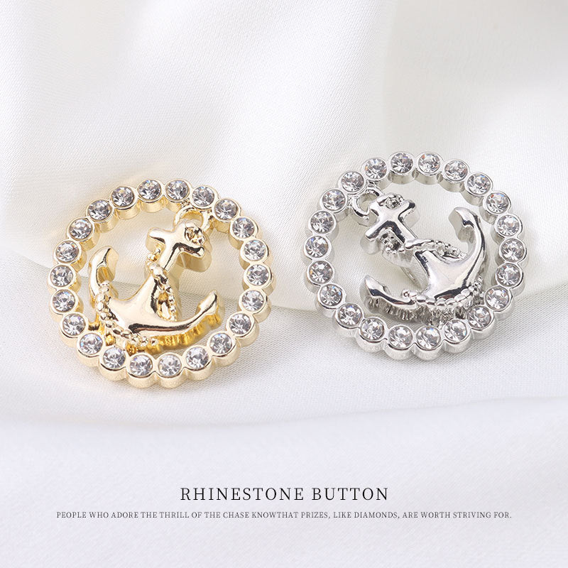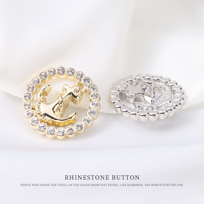 15/18/20/23mm okrugli šuplji gumbi u obliku sidra s ugrađenim cirkonima, metalni s drškom, 12 komada za ženske modne kapute i vjetrovke