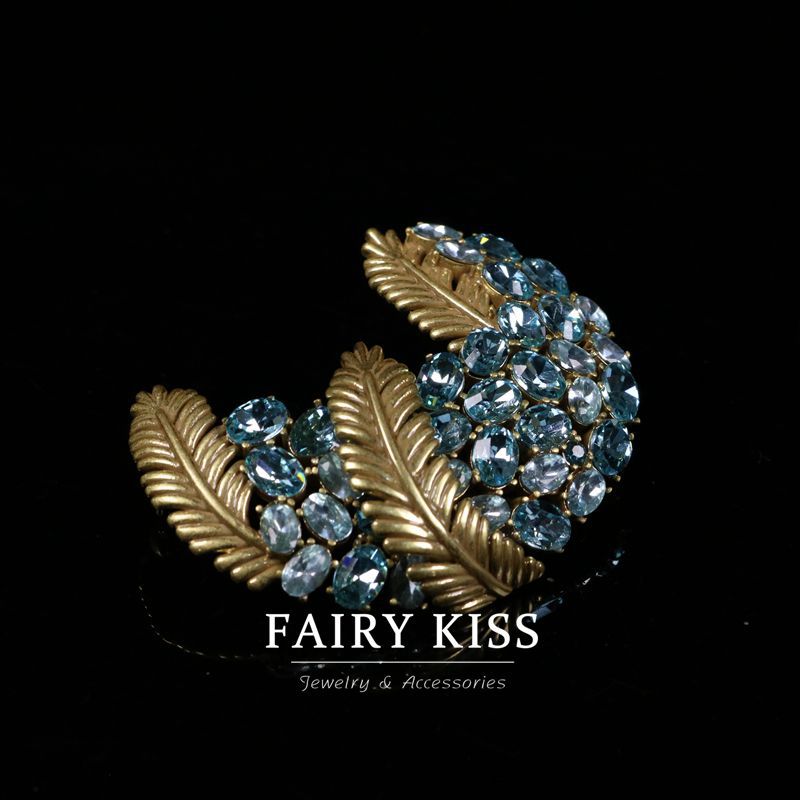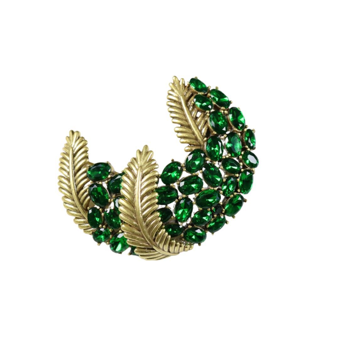 Zöld és kék strasszkövekkel díszített réz tollbross