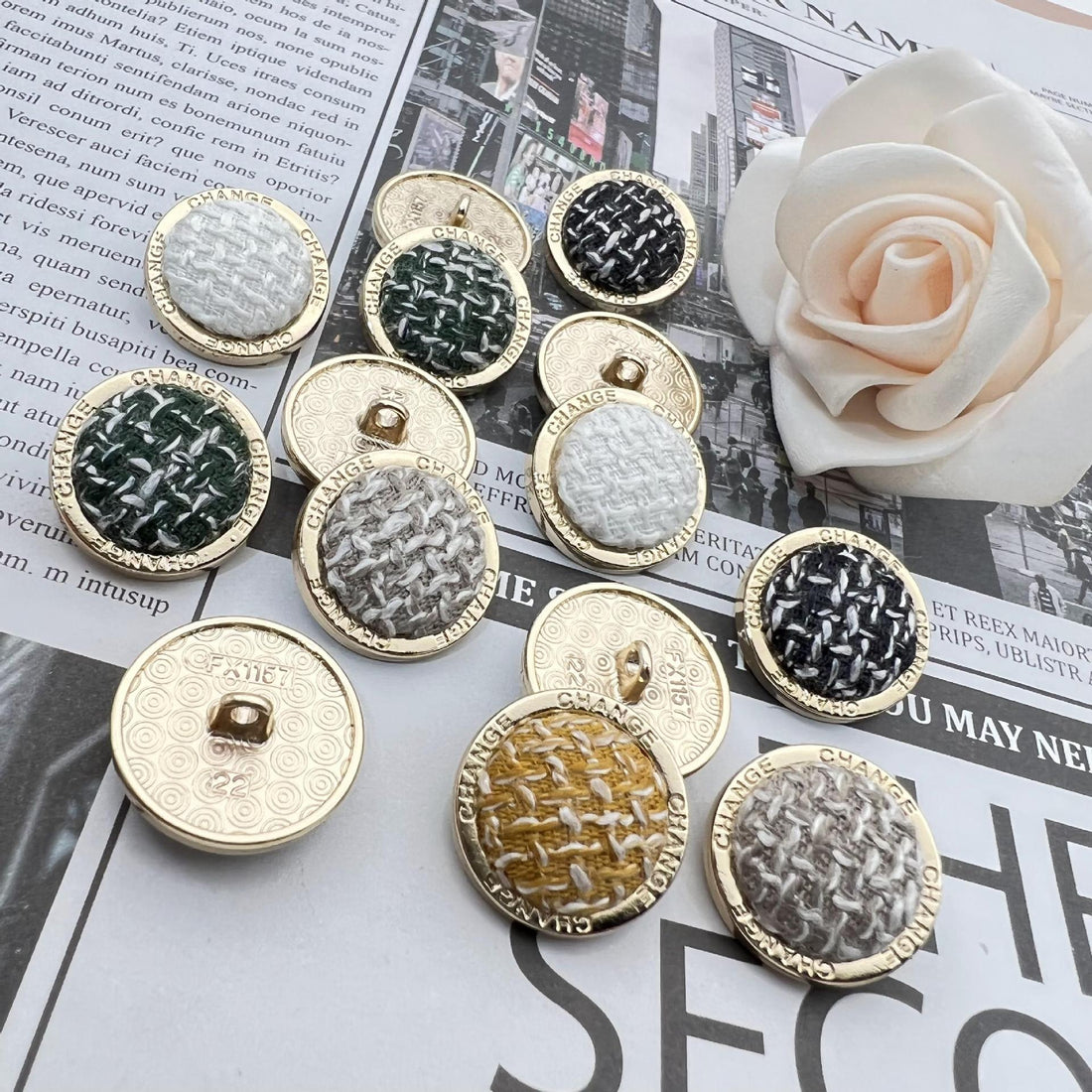 18/21/25mm Fløyelskjede Runde Kant Metallknapper 12stk