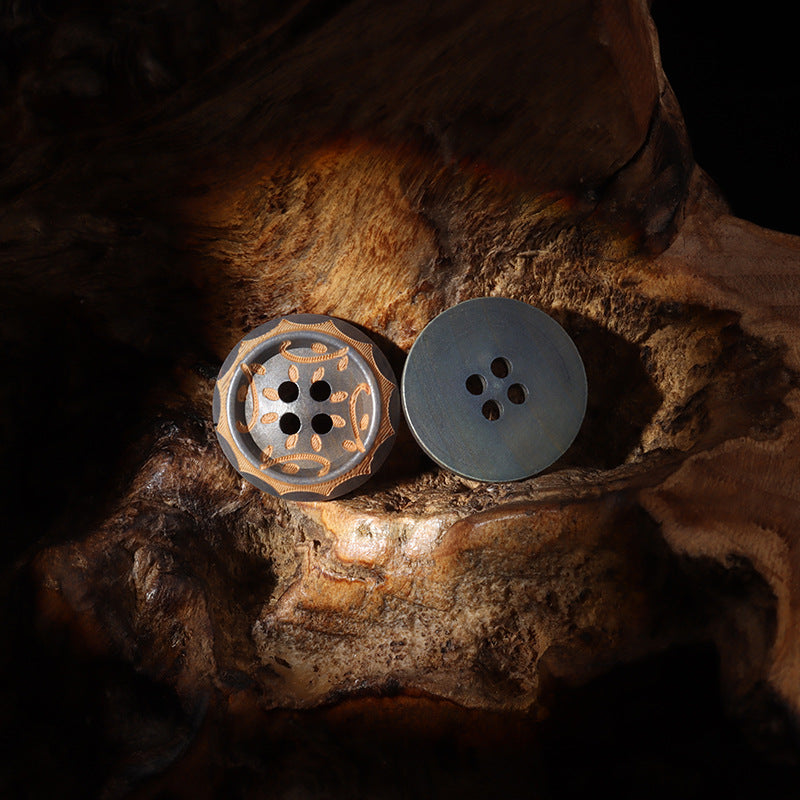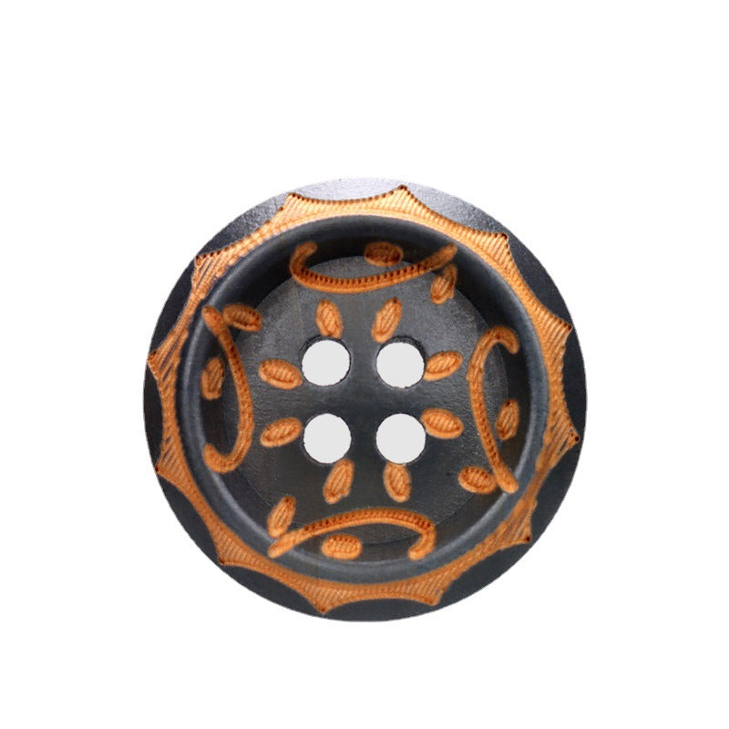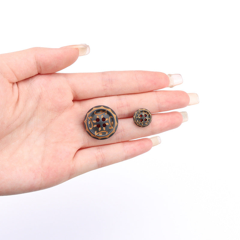 Te drewniane guziki o rozmiarach 11,5/15/20mm to unikalne połączenie tradycyjnego rzemiosła i nowoczesnego designu. Szaro-brązowe wypalane wykończenie lakierem nadaje im bogaty i lśniący wygląd, a laserowo grawerowane wzory vintage dodają elegancji i uroku.