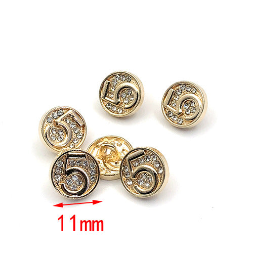 11mm Złote Okrągłe Guziki z Cyrkonią Numer 5 na Metalowej Łodydze 20 szt.