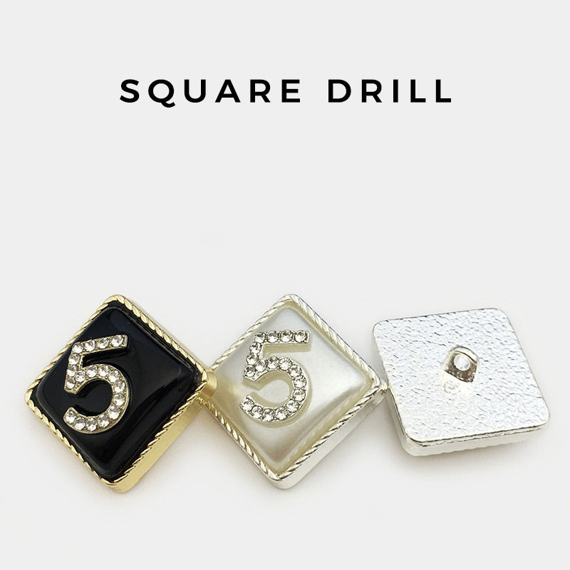 Te guziki 15/17.5/22.5mm to unikalne połączenie stylu i osobistego charakteru. Ich kwadratowy metalowy design oferuje nowoczesny i elegancki wygląd. Prawdziwym wyróżnikiem jest wyraźna '5' wytłoczona na każdym guziku, z starannie osadzonymi diamentami, które dodają odrobinę blasku.