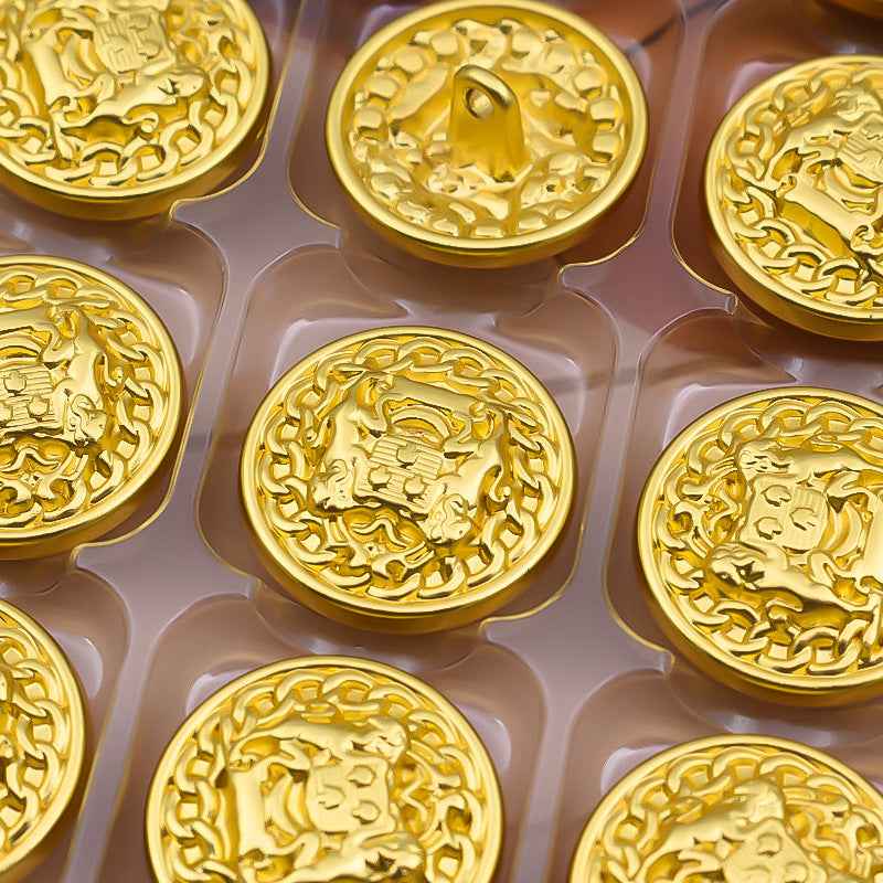 15/18/20/23/25mm Brytyjskie guziki z oczkiem z lwem - Vintage złote guziki metalowe do płaszczy i marynarek (30 szt. zestaw wielorozmiarowy)