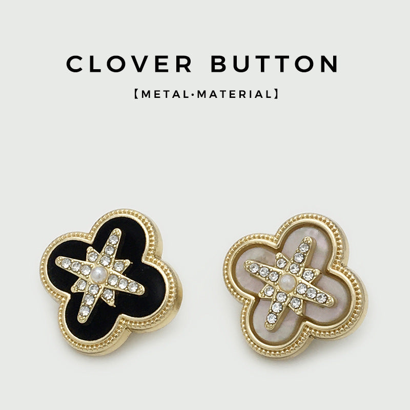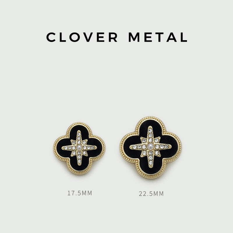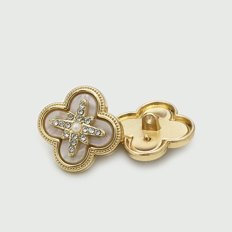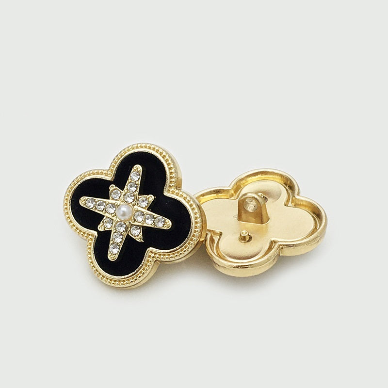 17,5mm/22,5mm Wykwintne metalowe guziki z koniczyną zdobioną diamentami 10 szt.
