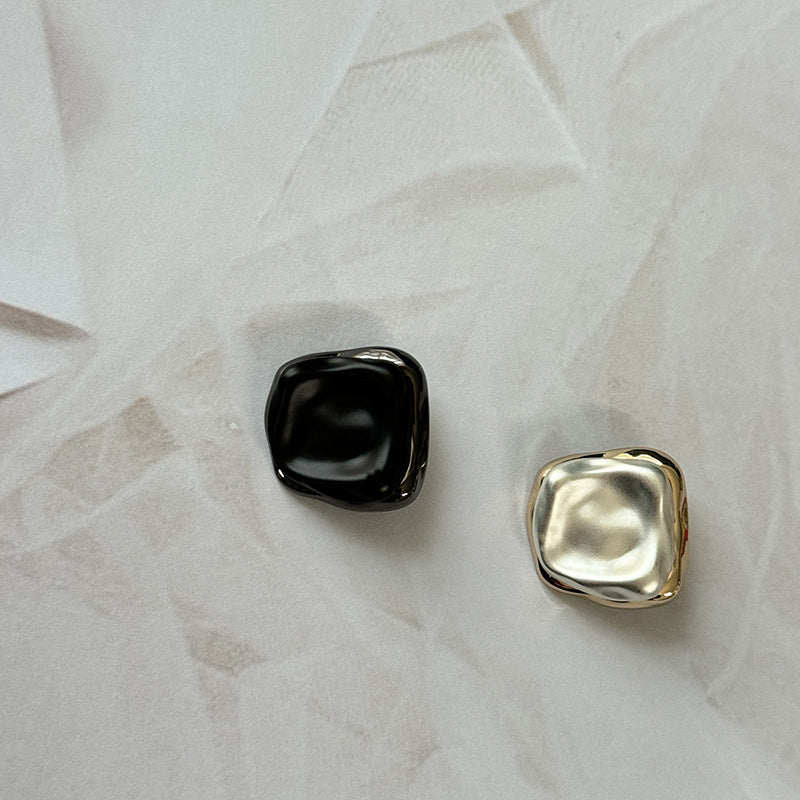 Te kwadratowe metalowe guziki o wymiarach 18-25 mm to unikalny i stylowy dodatek do każdego ubrania. Powierzchnia guzików jest celowo teksturowana, nadając im surowy, przemysłowy wygląd. Dostępne w wykończeniach złoto-białym i czarnym matowym, guziki te oferują wszechstronny wybór pasujący do różnych stylów.