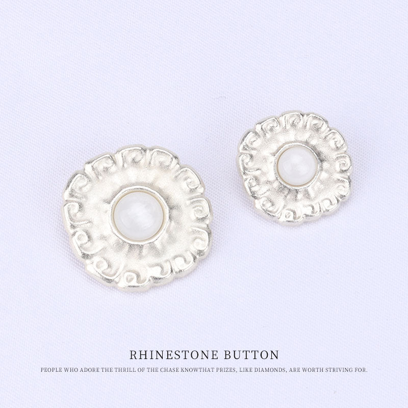 Guziki z matowego srebrnego metalu i perły 18mm/23mm z uchwytami do damskich bluzek 12 szt.