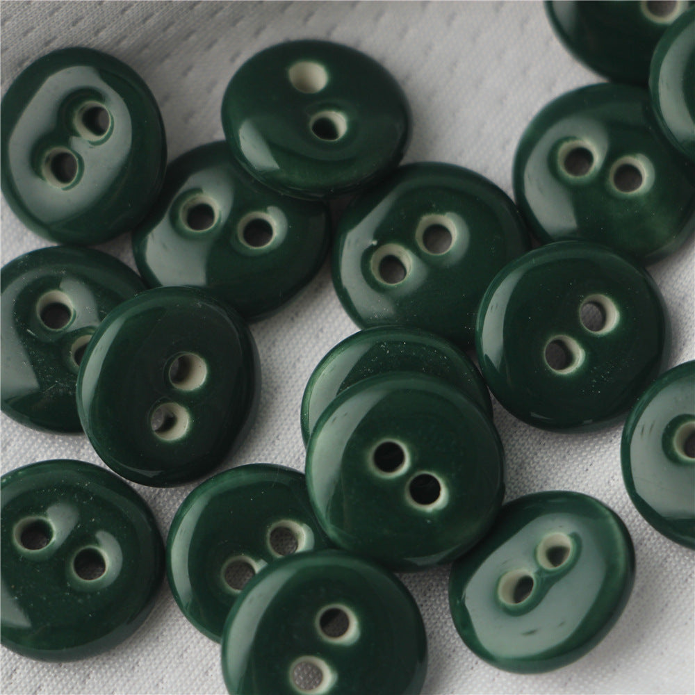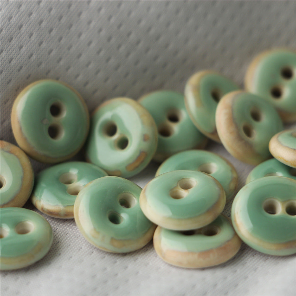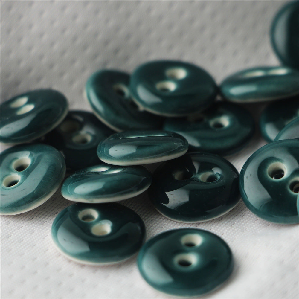 18mm Okrągłe 2-otworowe Ręcznie Wykonane Ceramiczne Guziki do Szycia w Głębokiej Zieleni, Ciemnym Niebieskim i Jasnej Zieleni 4 szt.
