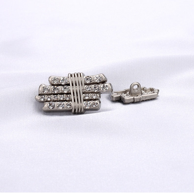 20/24/30mm Nieregularne Długie Paskowe i Związane Spersonalizowane Metalowe Guziki z Kryształkami do Kaszmirowych Płaszczy i Swetrów 12 sztuk