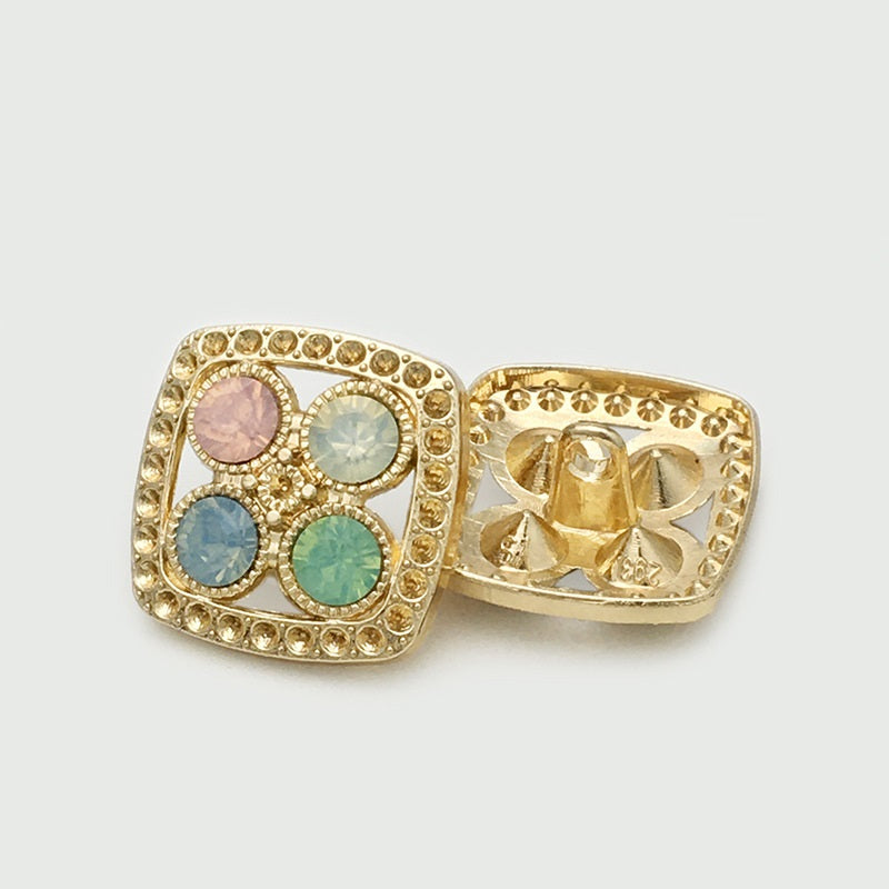 20mm Złote Kwadratowe Metalowe Guziki Kolorowe Kryształowe Diamenty 20 szt.