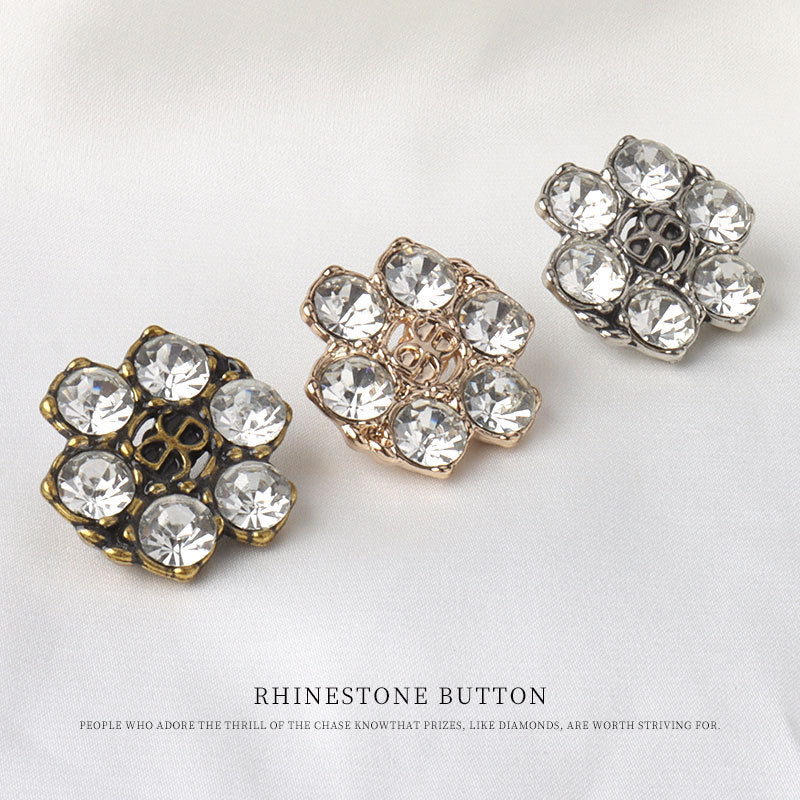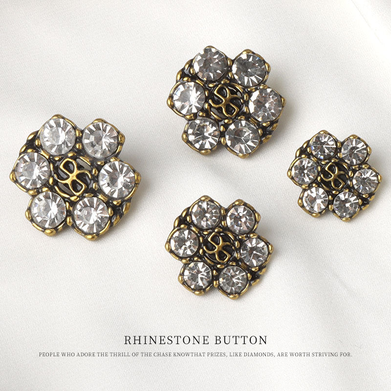Guziki z cyrkoniami 18/20/23/25mm w kolorach antycznego brązu, złotym i gunmetal z oczkami, 10 szt.