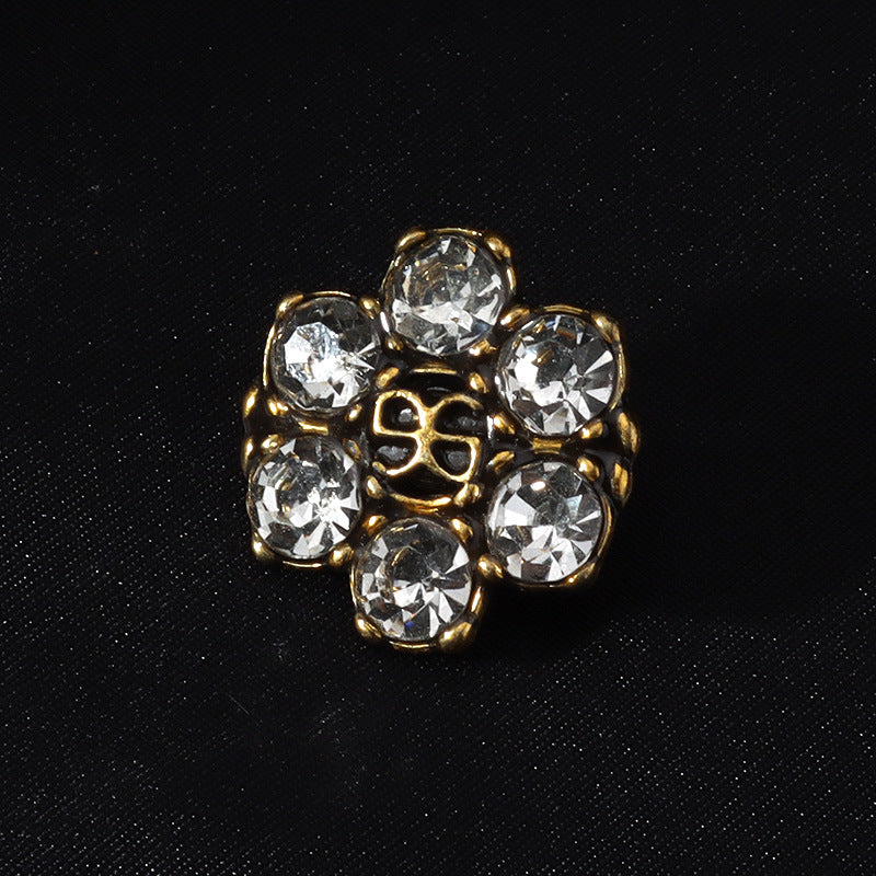 25mm Antyczne Brązowe Złote Guziki z Cyrkoniami i Nóżką z Mosiądzu 10 szt.