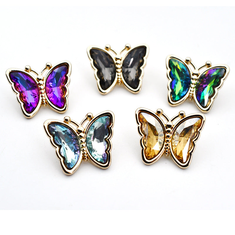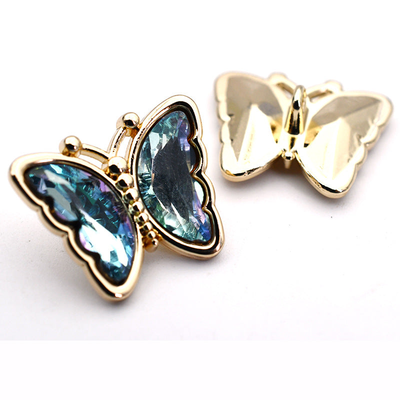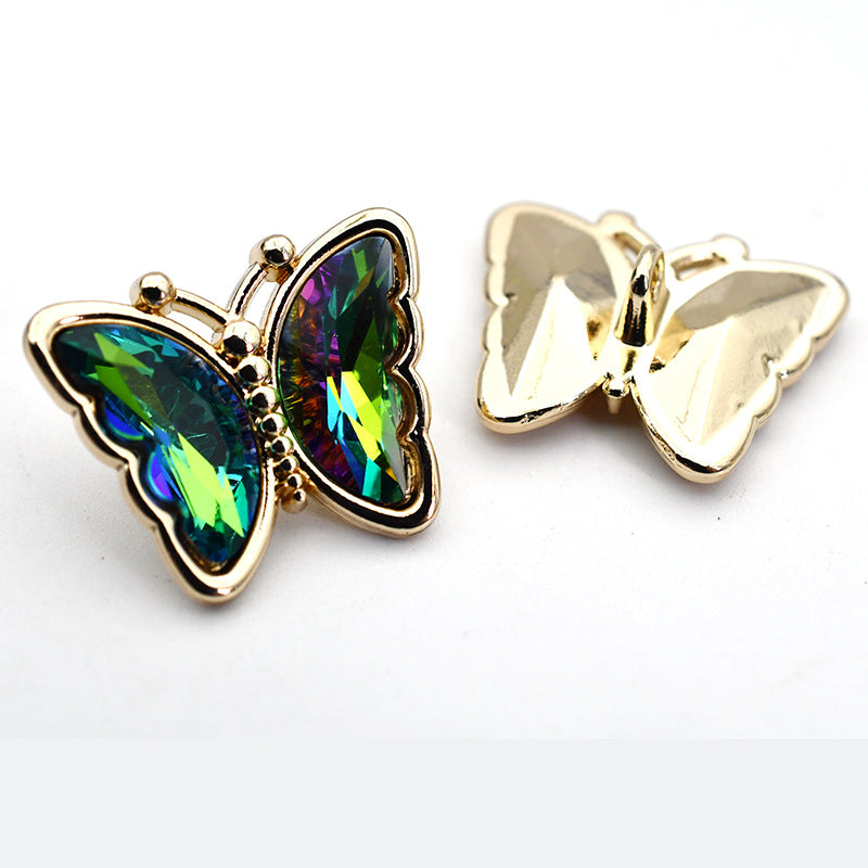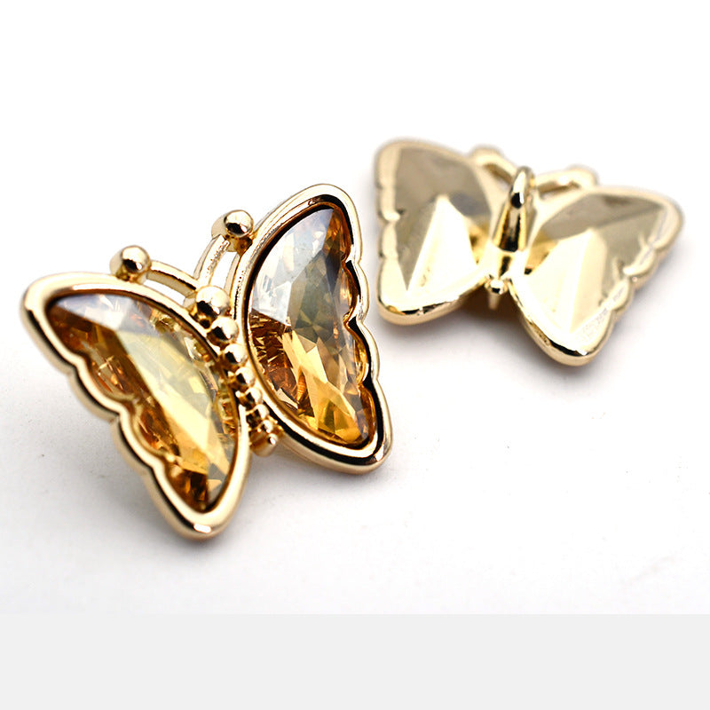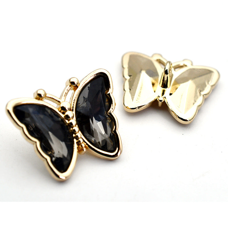 Guziki z kryształami cyrkonii w kształcie motyla ze szklanym metalowym oczkiem do bluzek, kardiganów i płaszczy 10 szt.