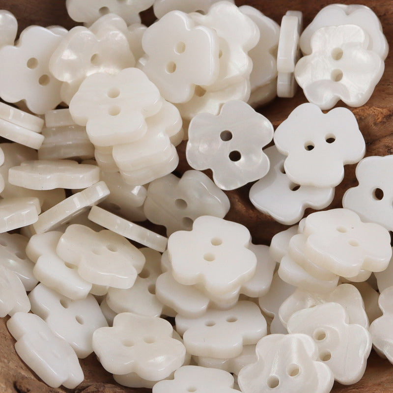 Urocze małe kwiatowe guziki z żywicy z dwoma otworami, opakowanie 50 sztuk