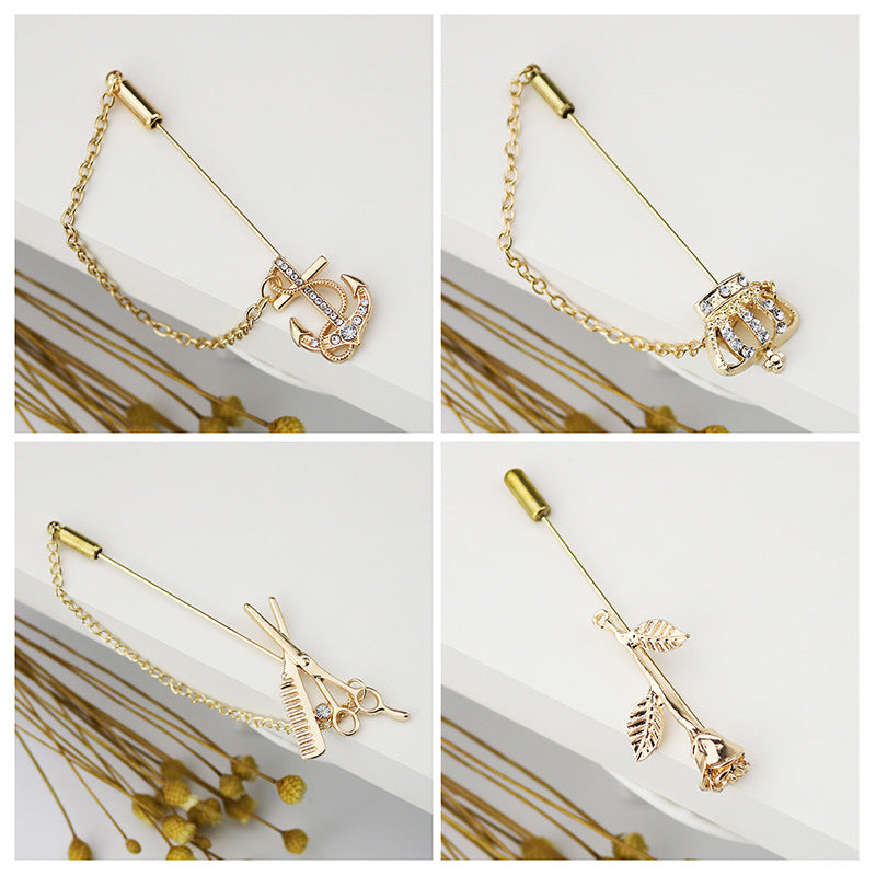 Przypinka z długim szpikulcem Korona, Kotwica i Ster Kwiat - Broszka do garniturów męskich i damskich, zestaw 4 sztuk
