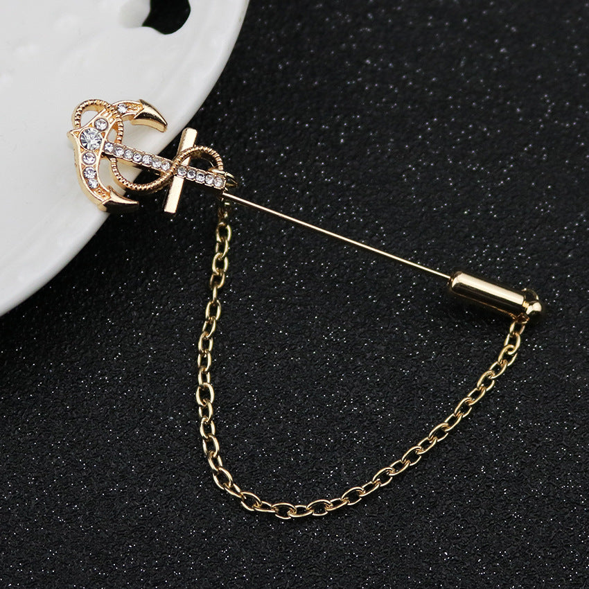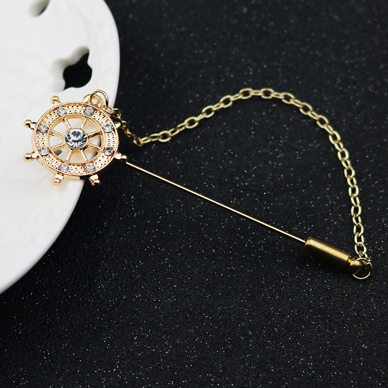 Ta unikalna przypinka z długim szpikulcem łączy elementy korony, kotwicy, steru i kwiatu, tworząc naprawdę przyciągający wzrok dodatek. Idealna zarówno dla mężczyzn, jak i kobiet, dodaje elegancji i indywidualności każdemu garniturowi.