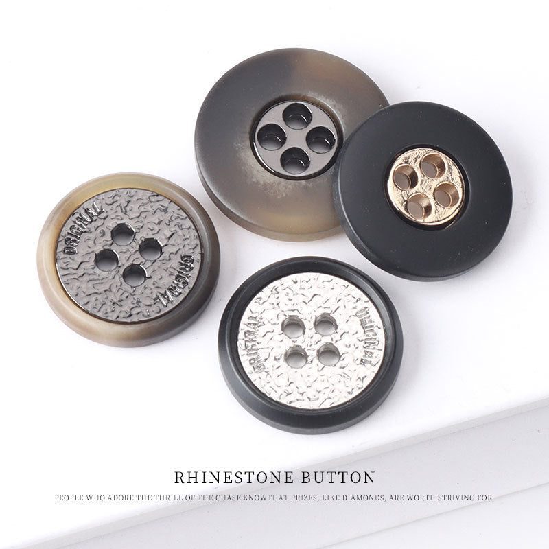 Metalowe guziki z żywicy czterootworowe dwukolorowe do kaszmirowych płaszczy, opakowanie 20 sztuk