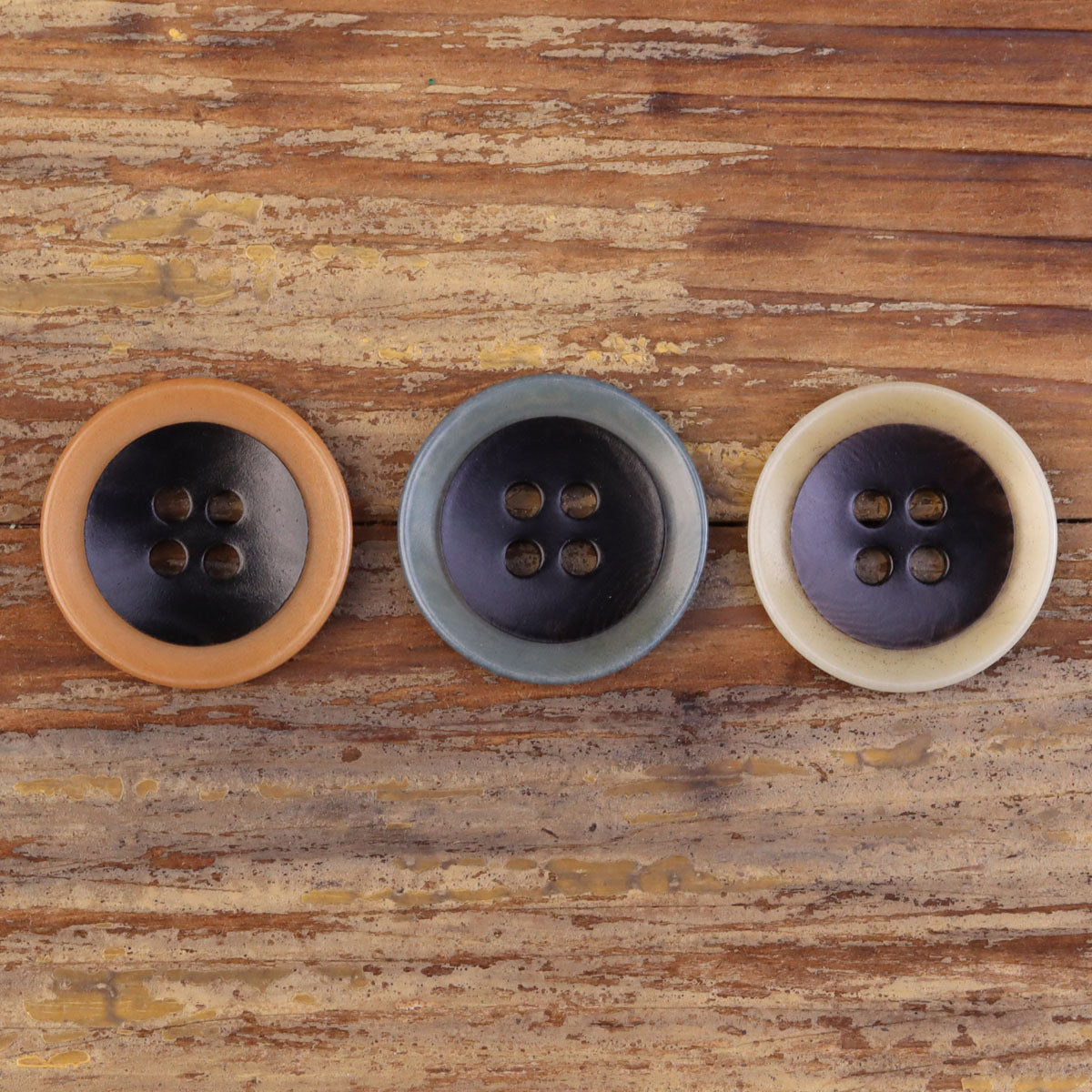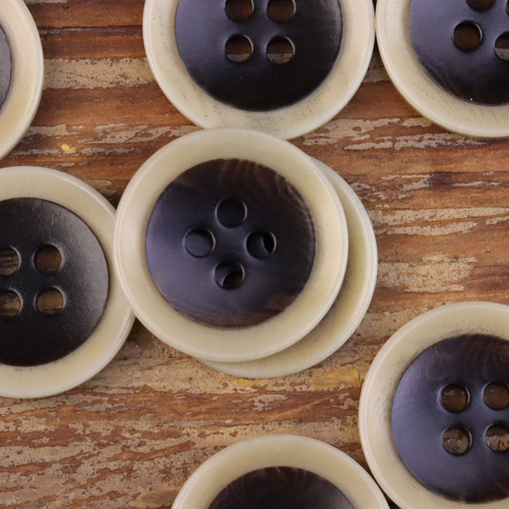 Dwukolorowe naturalne guziki z łupiny owocu palmy z czterema dziurkami, opakowanie 30 sztuk (3 kolory)