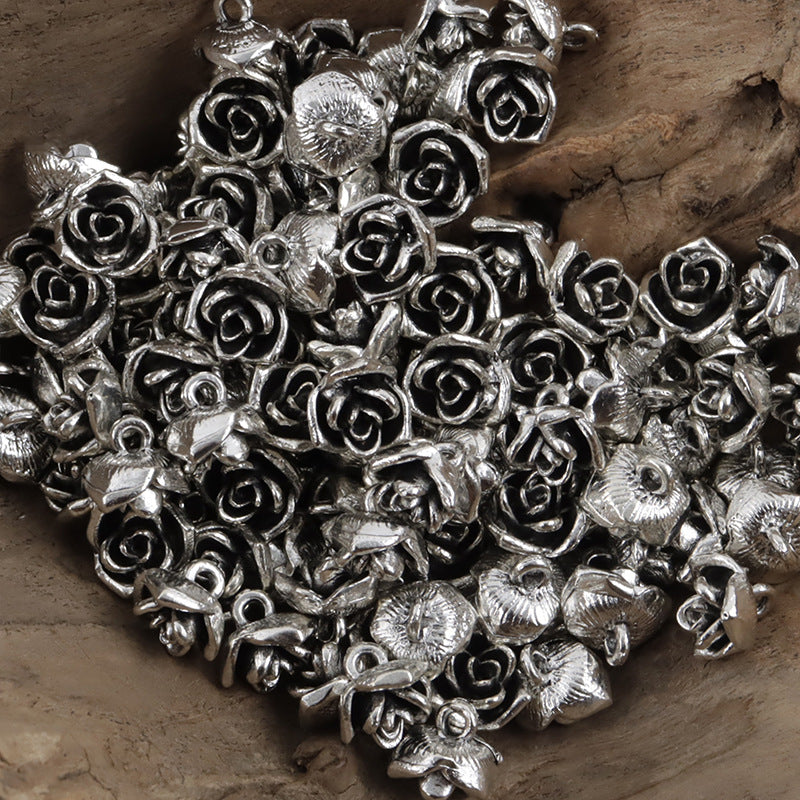 Odkryj czarujący urok tych vintage mini metalowych guzików w kolorze srebrnym z czarnym lakierem i postarzałym wzorem róży. Te unikalne guziki są idealne, aby dodać odrobinę elegancji i nostalgii do twojej odzieży, akcesoriów lub projektów rękodzielniczych.