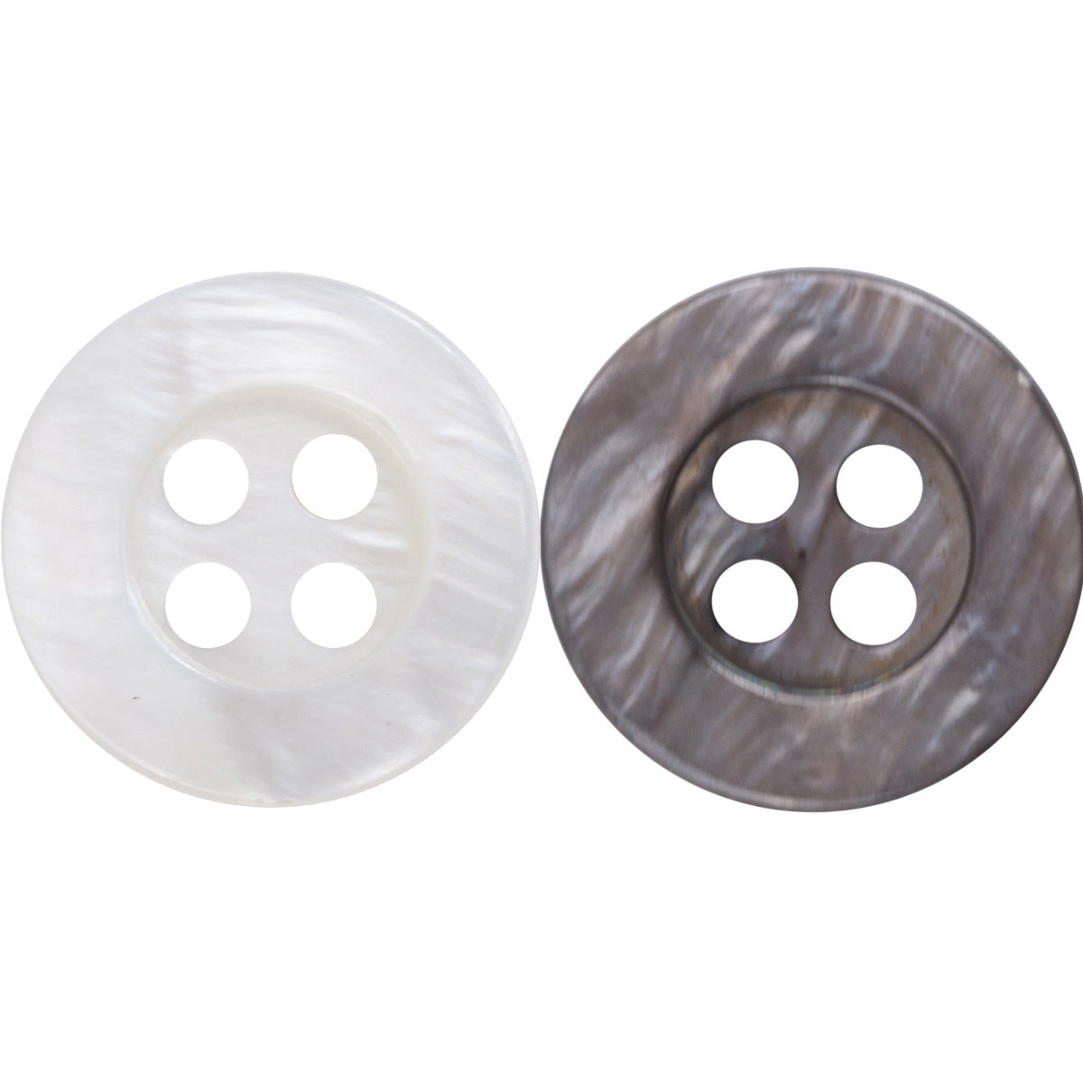 Te białe i dymnoszare guziki z perłowej muszli o szerokim rondzie to luksusowy i elegancki wybór dla naturalnych jedwabnych koszul. Wykonane z prawdziwej perłowej muszli, emanują naturalnym pięknem i blaskiem, które są po prostu urzekające.