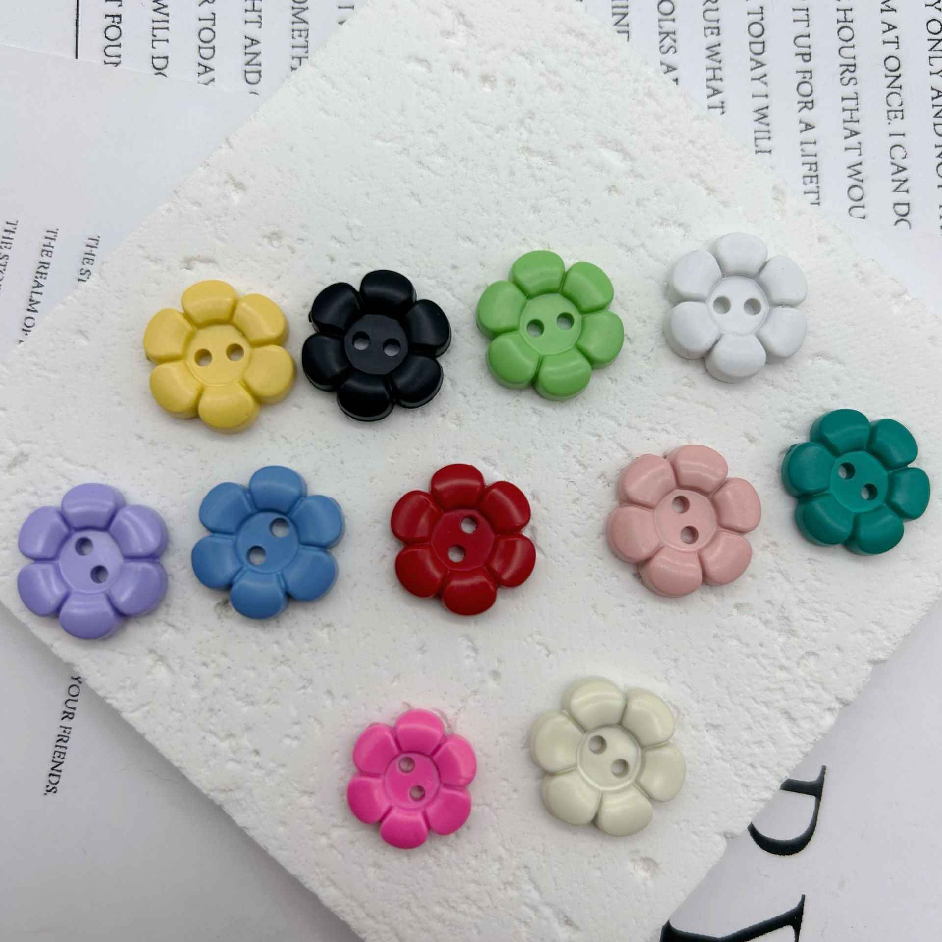 11.5mm Colorful Plastic Flower-Shaped Two-Hole Buttons for Children's Clothing Decoration 100PCS