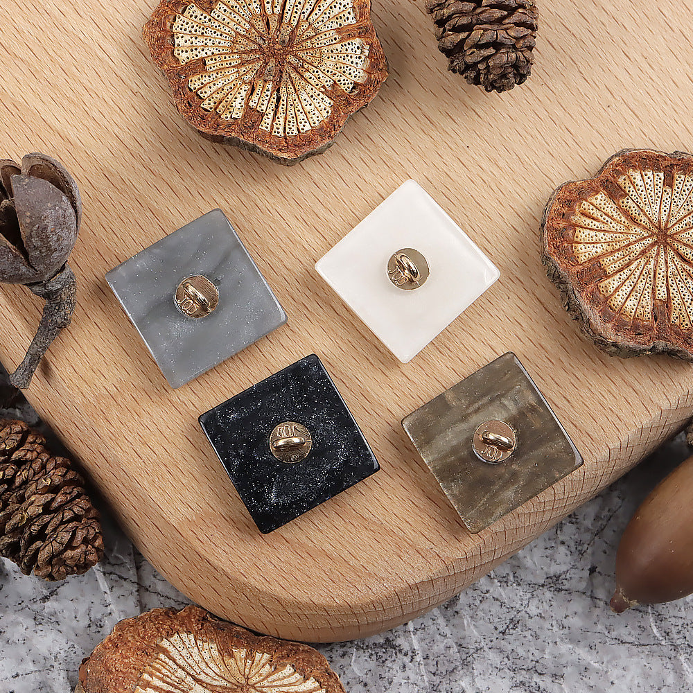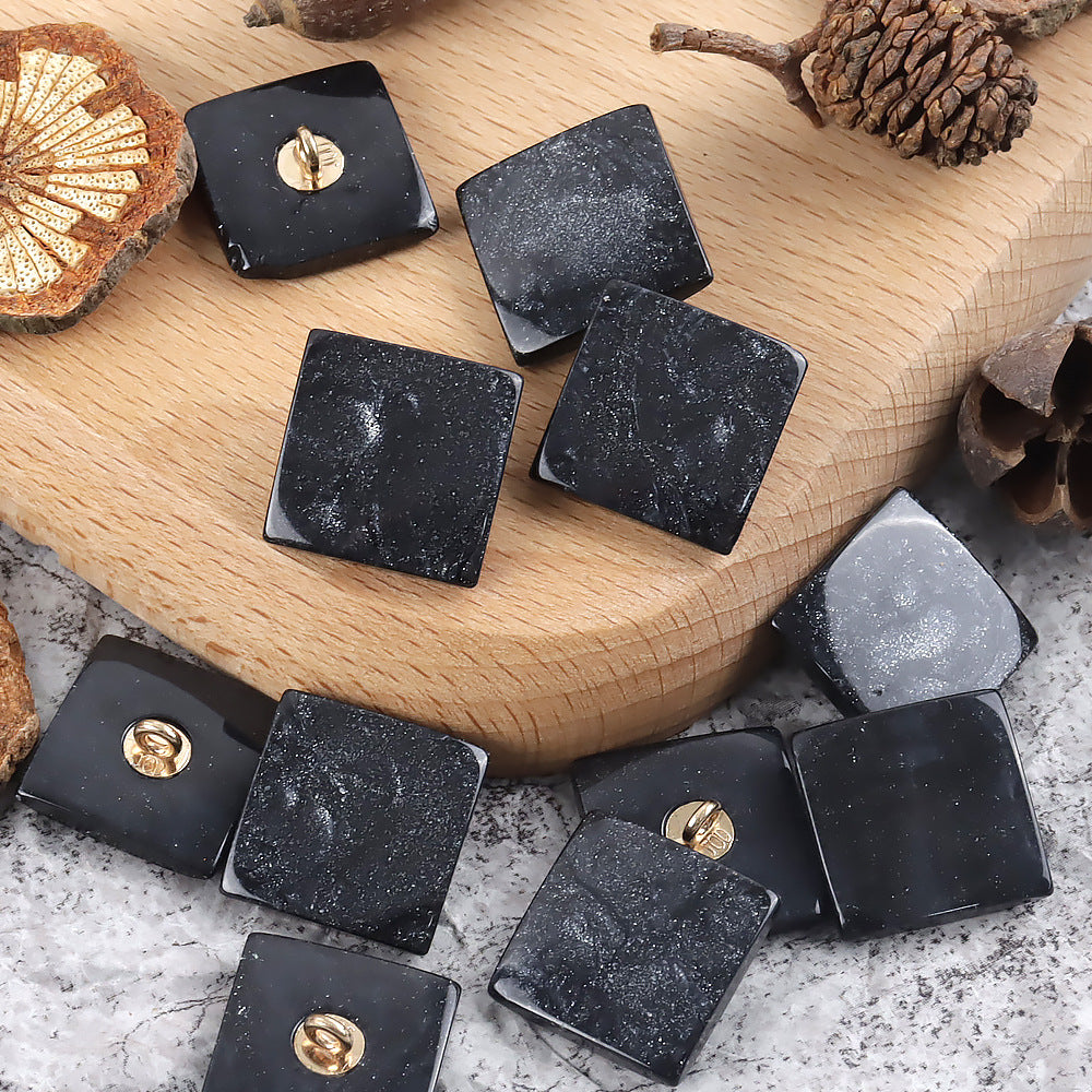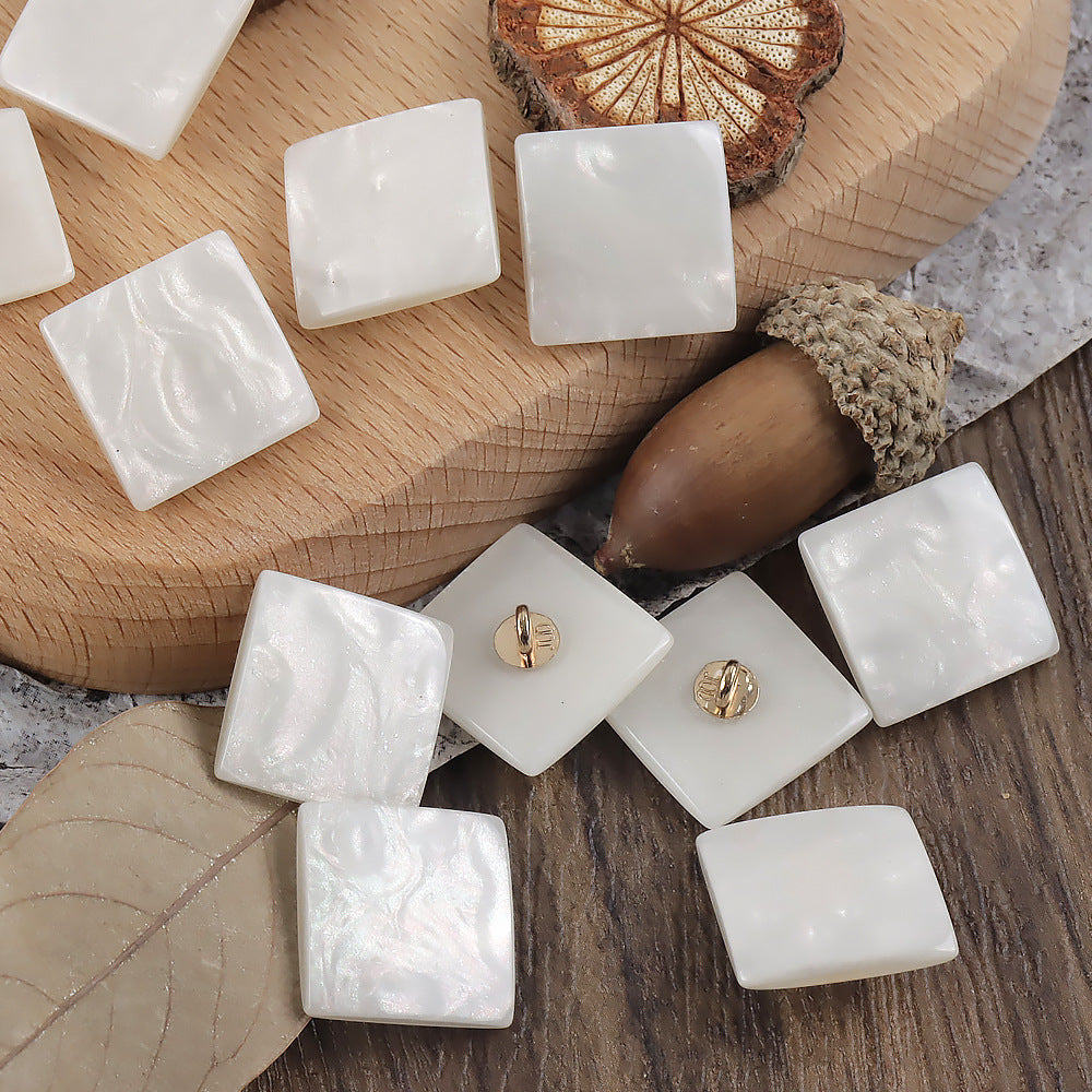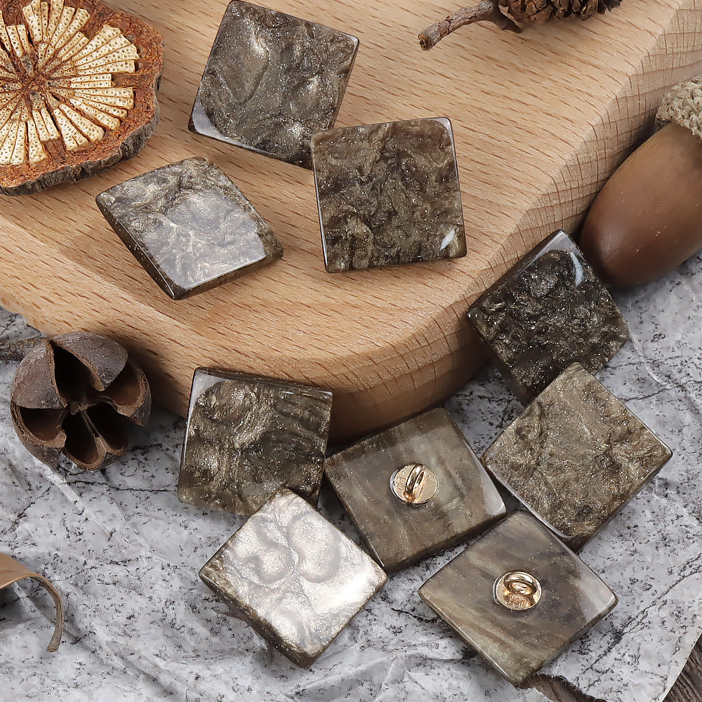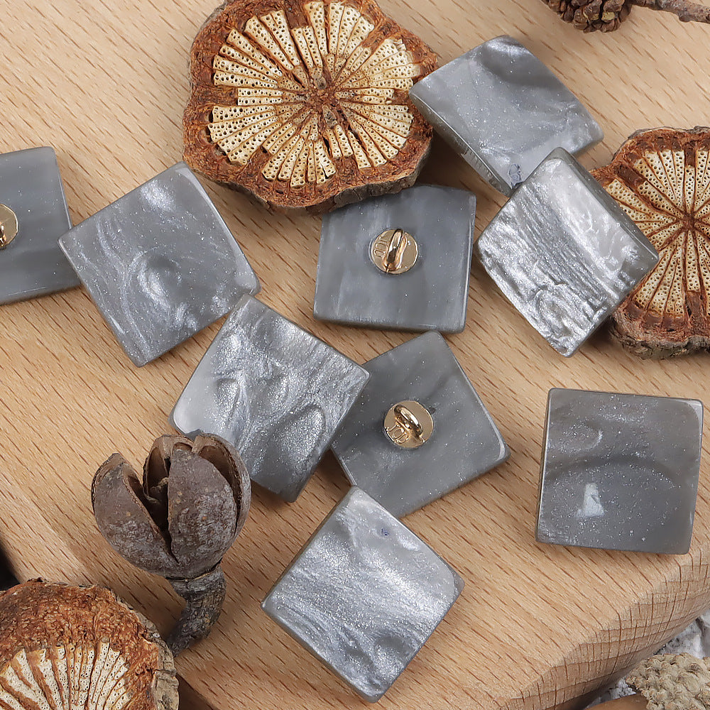 These buttons, sized 17.5/23/25mm, are a unique combination of metal and resin. They have a square shape with a beautiful pearlized ripple effect. The metal part provides durability and a sleek look, while the resin adds a touch of softness and unique texture.