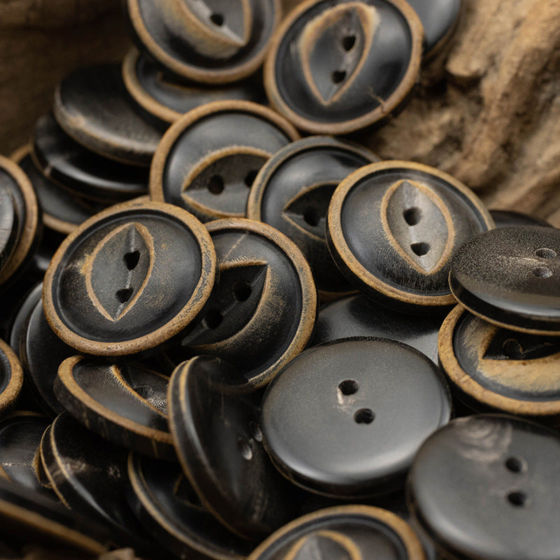 Fire Burned Horn Rustic Clothing Buttons 2 Hole Fish-Eye,10PCS