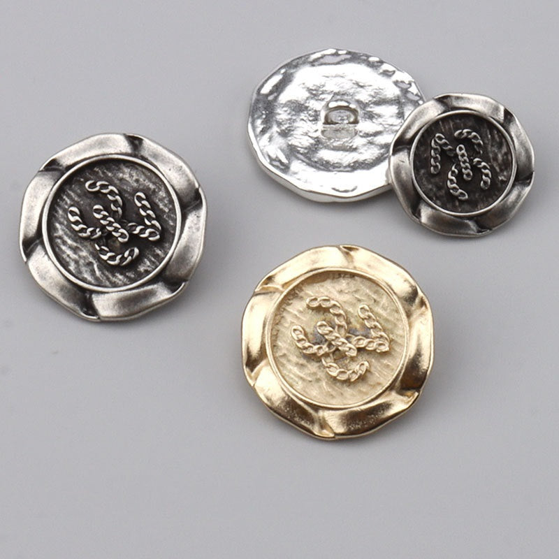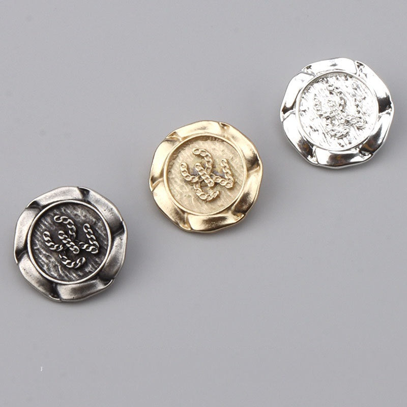 These 17.5/22.5mm metal buttons are designed in a Korean vintage style, available in both gold and silver finishes. They are perfect for woolen suits and jackets, adding a touch of luxury and elegance.
