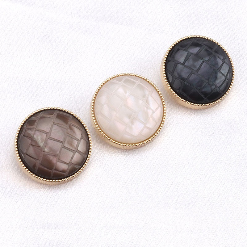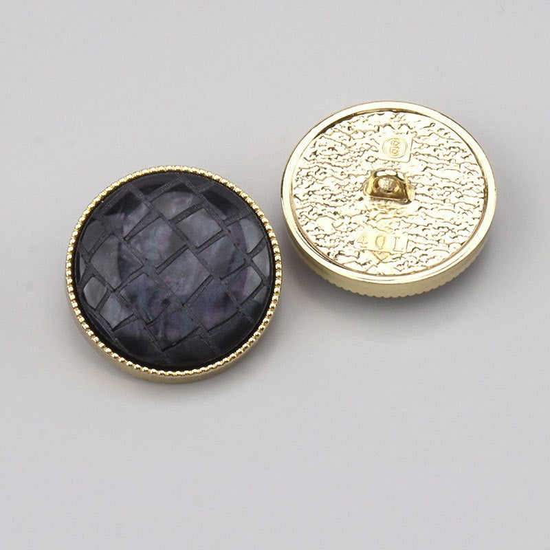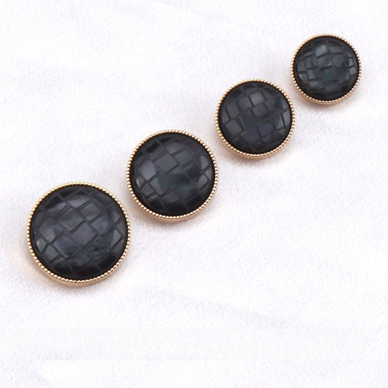 These buttons in sizes of 17.5mm, 20mm, 22.5mm and 25mm are a great choice for suit jackets. They are made of resin - alloy with a pearl - luster finish in black, white, and brown colors. The round shape gives them a classic and elegant look. The unique square - patterned texture on the surface adds a touch of sophistication. With shanks, they are easy to sew onto the fabric. The combination of resin and alloy makes them durable and sturdy. Whether you're wearing a formal business suit or a stylish casual suit with a check pattern, these buttons will enhance the overall appearance. Their different sizes provide flexibility for various suit designs, making your jacket look more fashionable and distinctive.