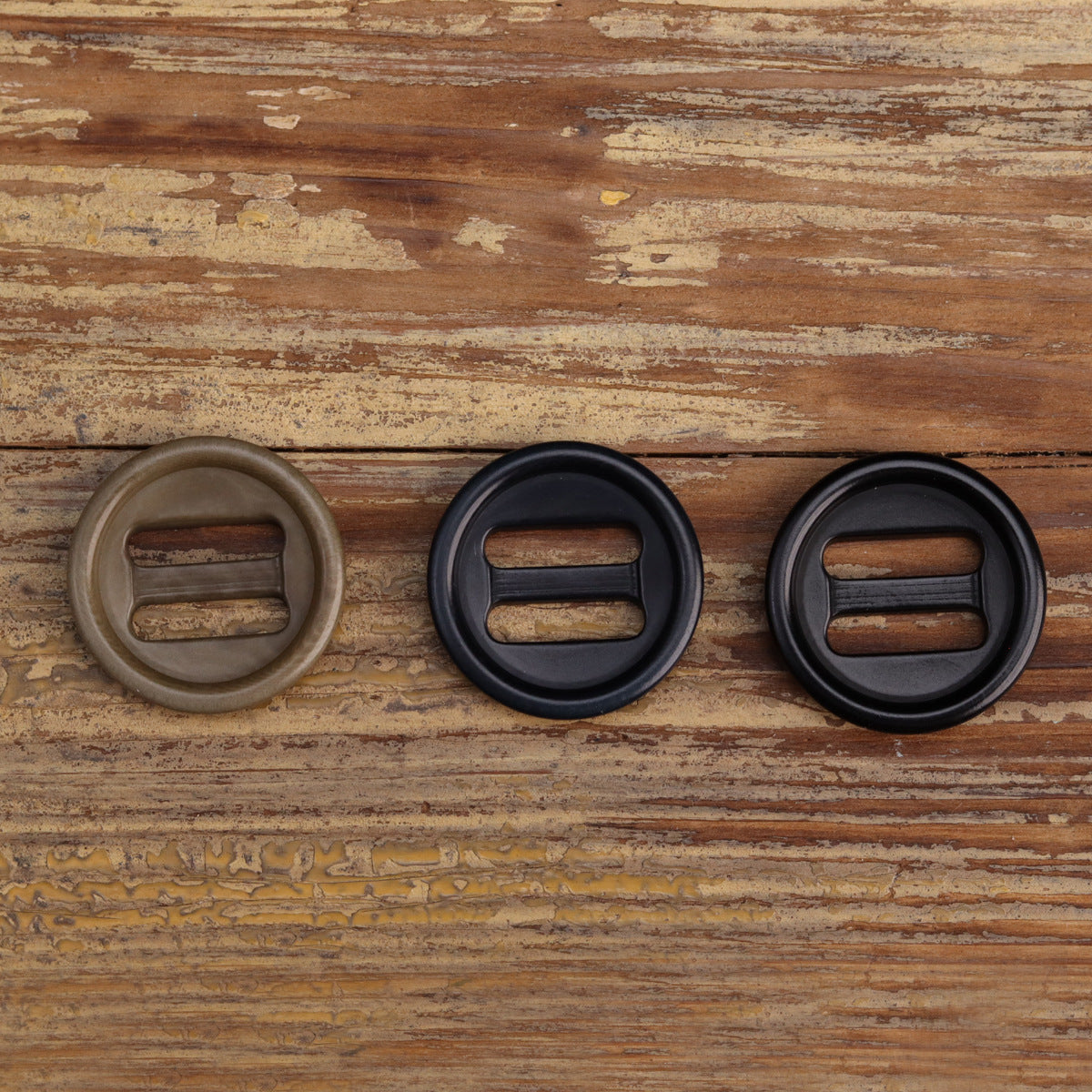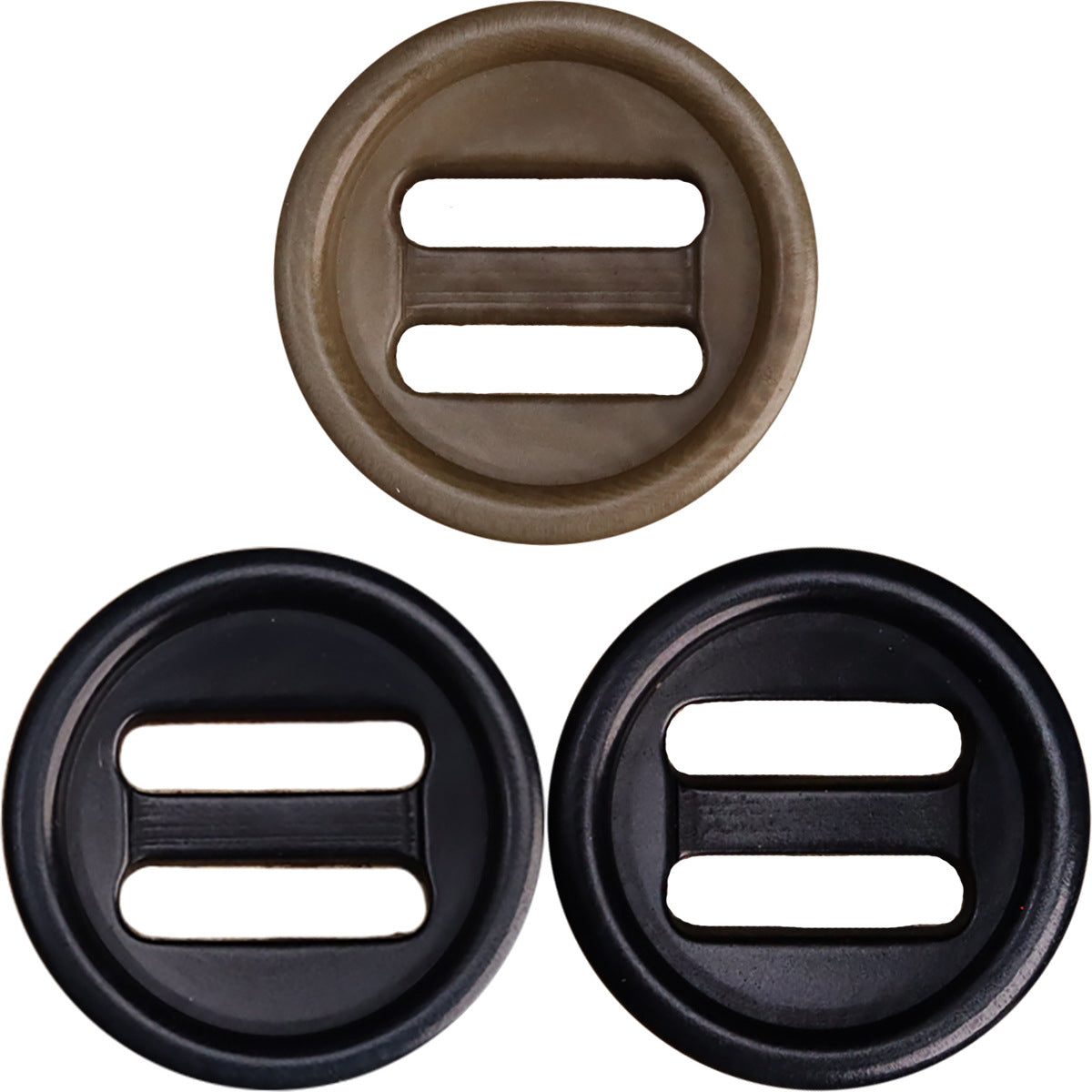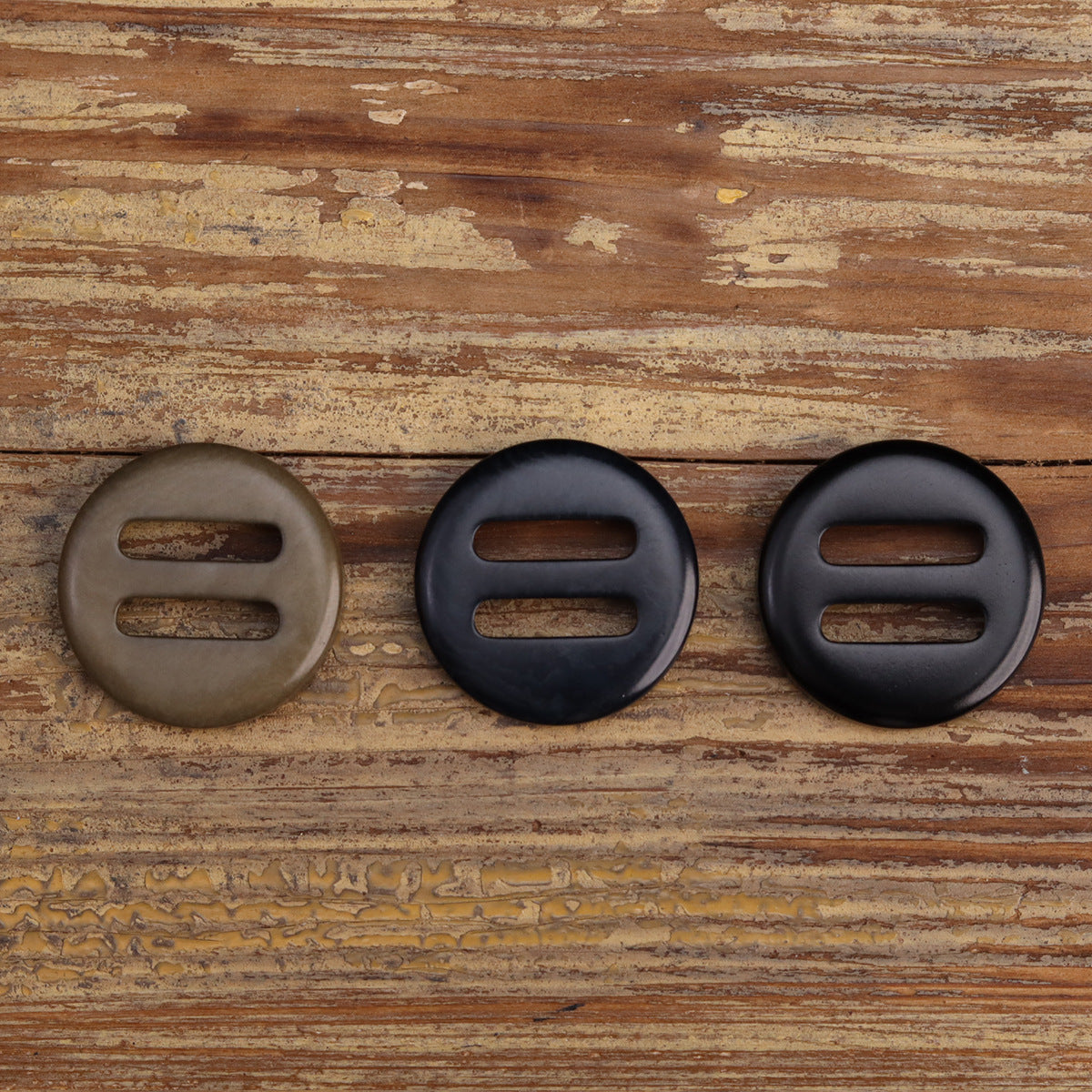 Two Oblong Hole Corozo Buttons Black Navy Blue Khaki 15 Pack (3 Colors)