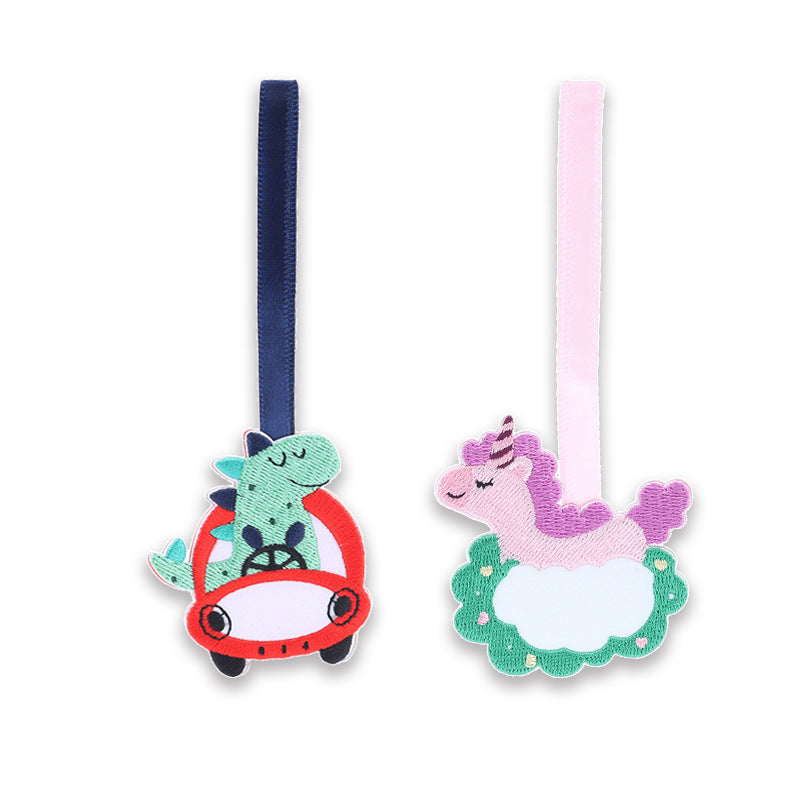 Ghiozdan pentru grădiniță cu 2 bucăți, etichetă cu nume brodată cu dinozaur și unicorn