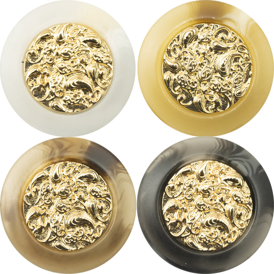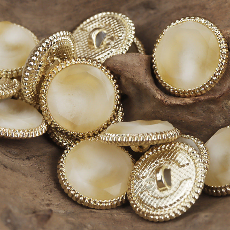 Buton din rășină și metal bej dantelă aurie 18-23mm, 10 bucăți