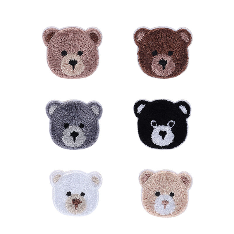 Set de 6 patch-uri autoadezive cu cap de ursuleț de pluș, 20mm, pentru haine