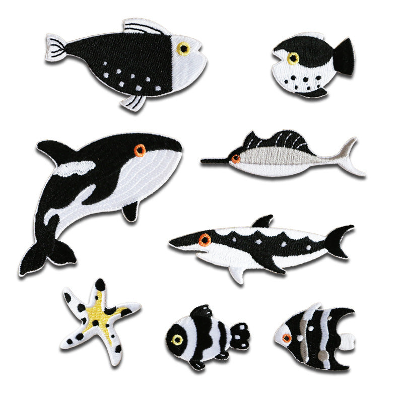 Set de 8 bucăți de patch-uri brodate autoadezive cu animale marine oceanice
