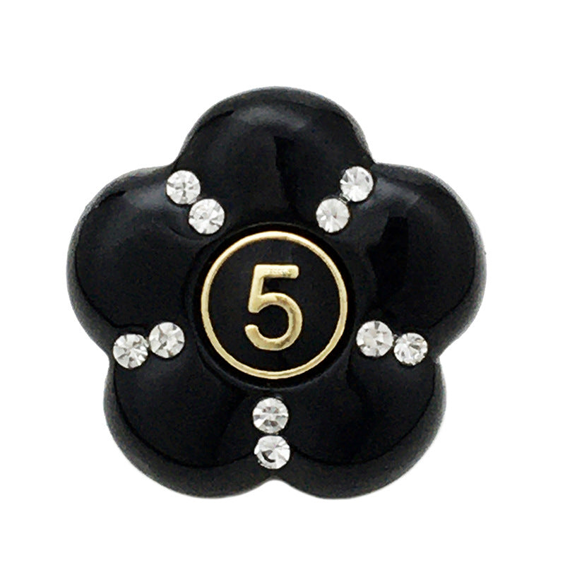Butoane din rășină cu diamant, floare alb-negru, numărul 5, 17,5/22,5 mm, 12 bucăți