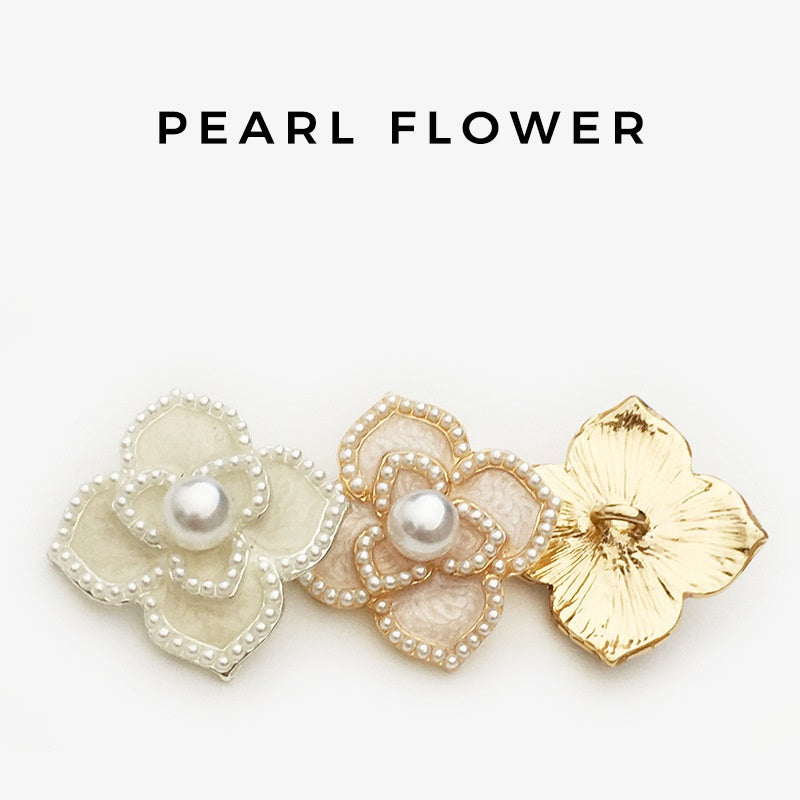 Nasturi metalici cu perlă în formă de floare cu 4/5 petale, 21mm, cu picior, 6 bucăți