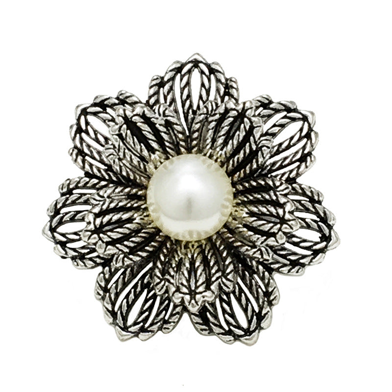 Butoane metalice vintage în formă de floarea-soarelui cu perle, 18/20/23mm, set de 48 bucăți