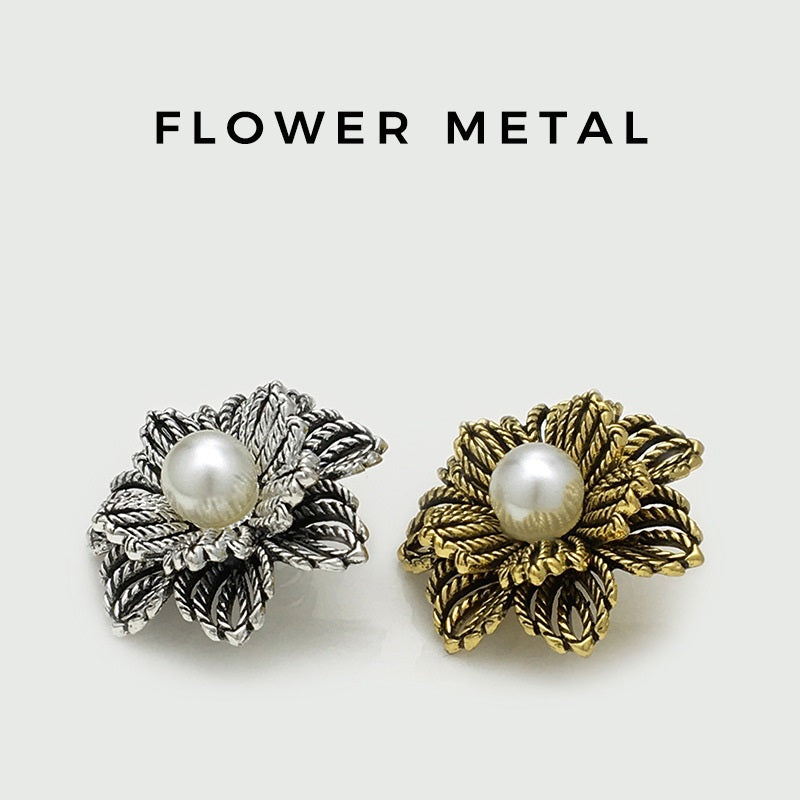 Butoane metalice cu flori, mărgele de perle aurii roz și argintii albe de 21mm, 6 bucăți