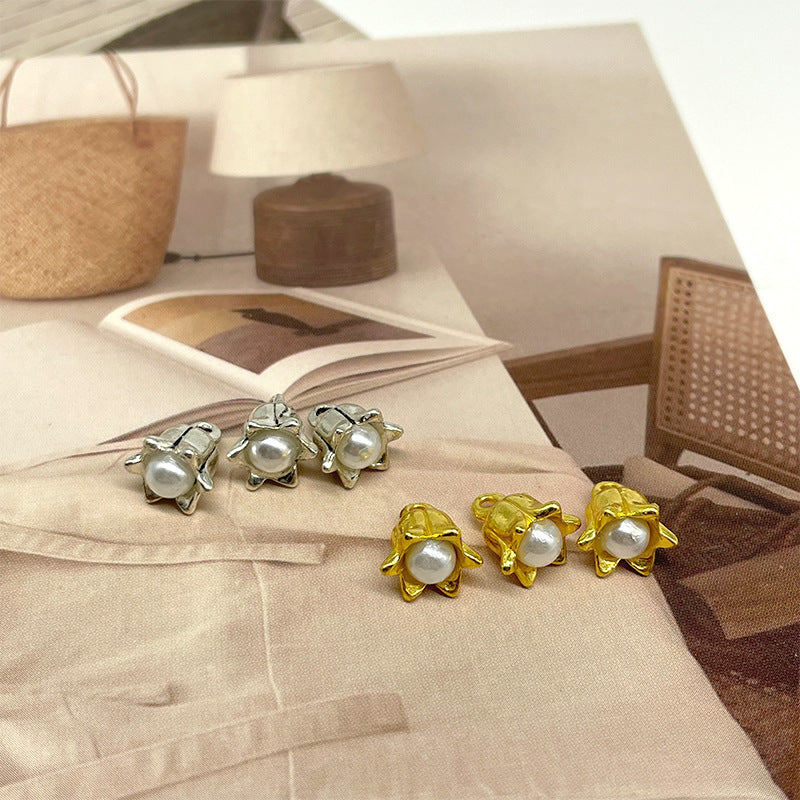Nasturi metalici cu floare de lăcrămioară de 10mm, miez de perlă, pentru cămașă, jachetă, butoni, 50 bucăți