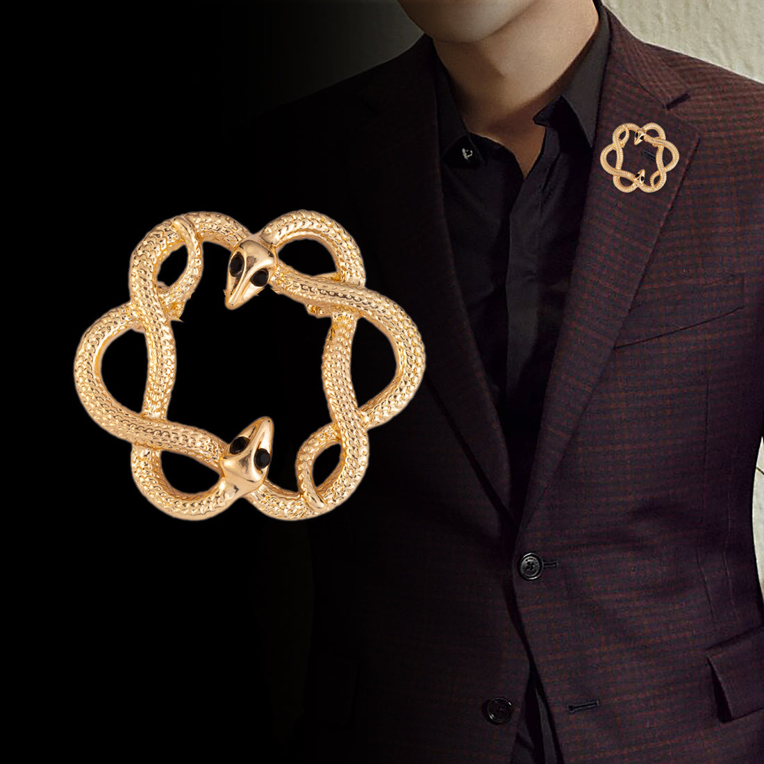 Brosa metalică retro cu flori aurii și argintii și șarpe, set de 4 bucăți