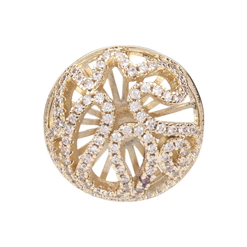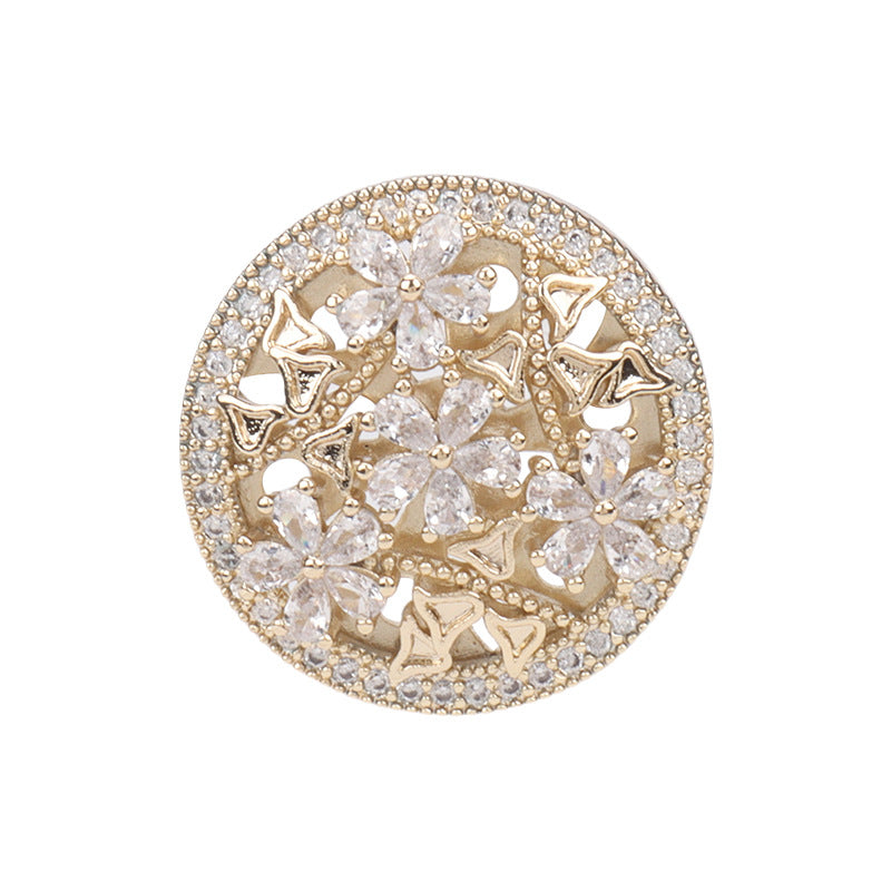 Buton din cupru cu diamante de zircon în formă de floare decupată, 2 bucăți