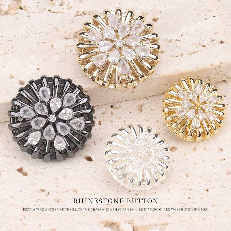 Nasture din perle de zirconiu cupru floarea-soarelui pentru paltoane de blană și pulovere 2 bucăți