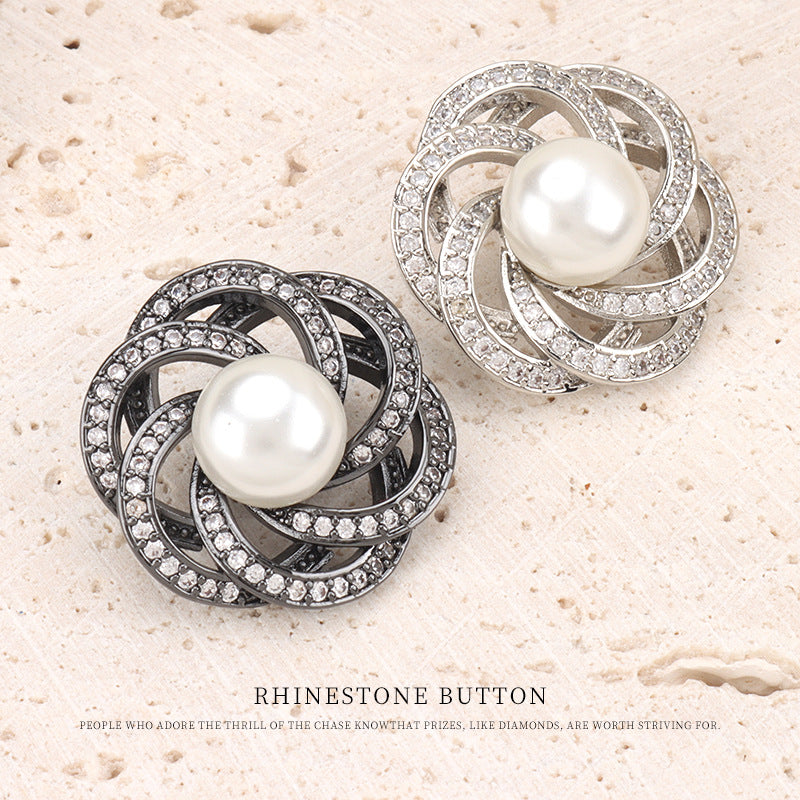 Buton cu floare de perlă și rhinestone de 0.9 inch, bază metalică cu picior, 6 bucăți